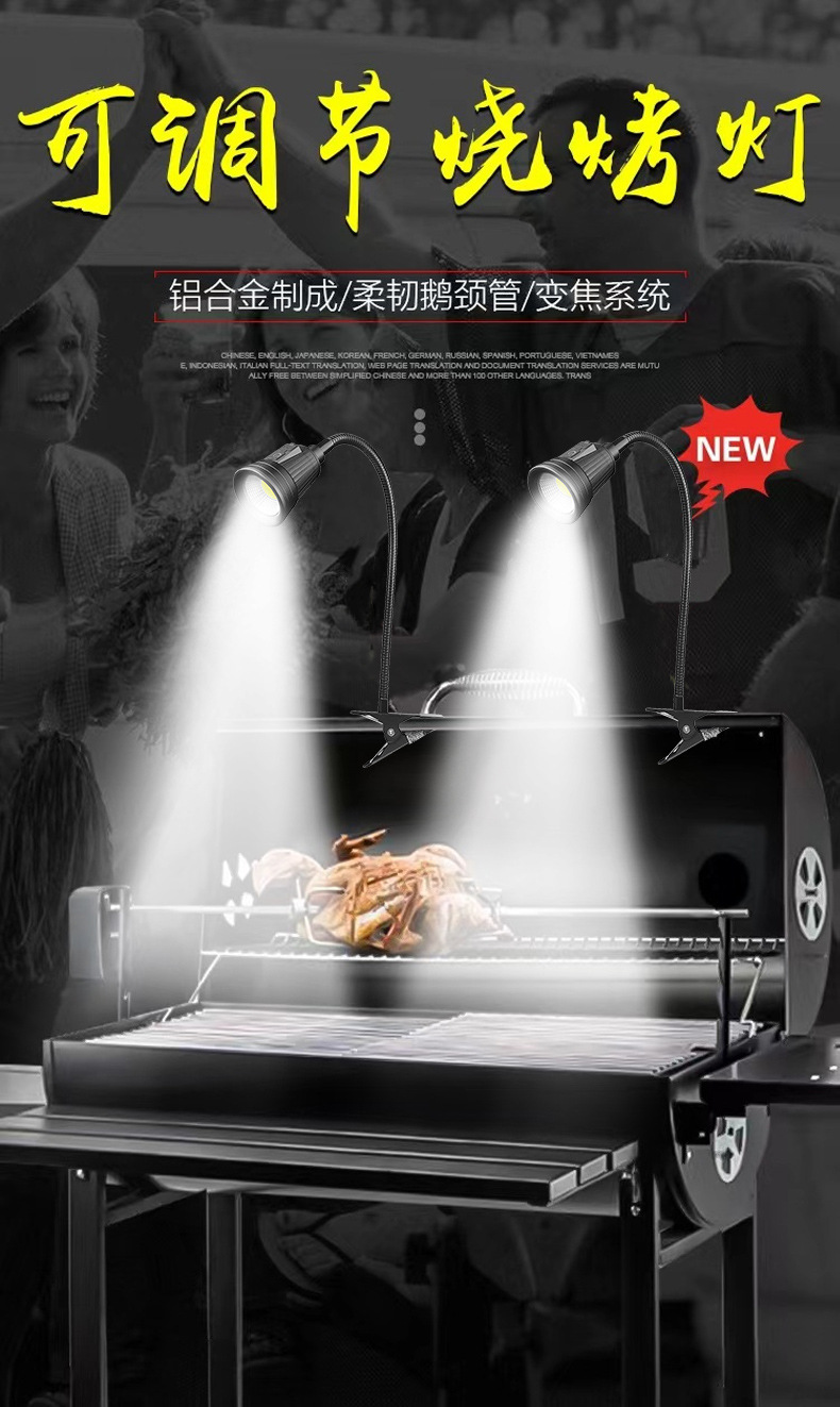Led 조정 가능한 바베큐 조명 야외 조명 다기능 usb 충전식 텔레스코픽 호스 캠핑 조명 클립 모델 사용자 정의스토어 가기