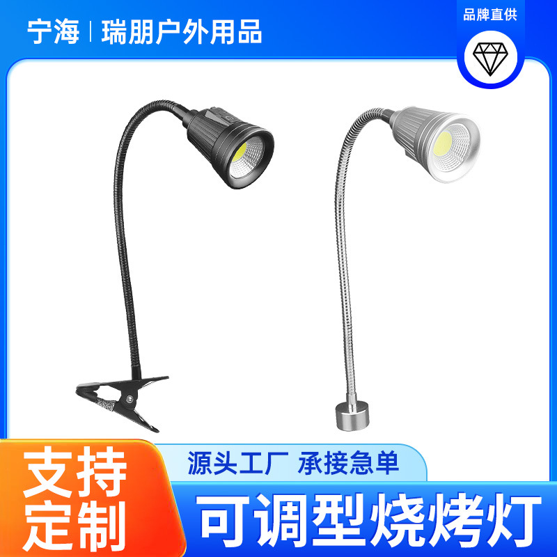 Led 조정 가능한 바베큐 조명 야외 조명 다기능 usb 충전식 텔레스코픽 호스 캠핑 조명 클립 모델 사용자 정의