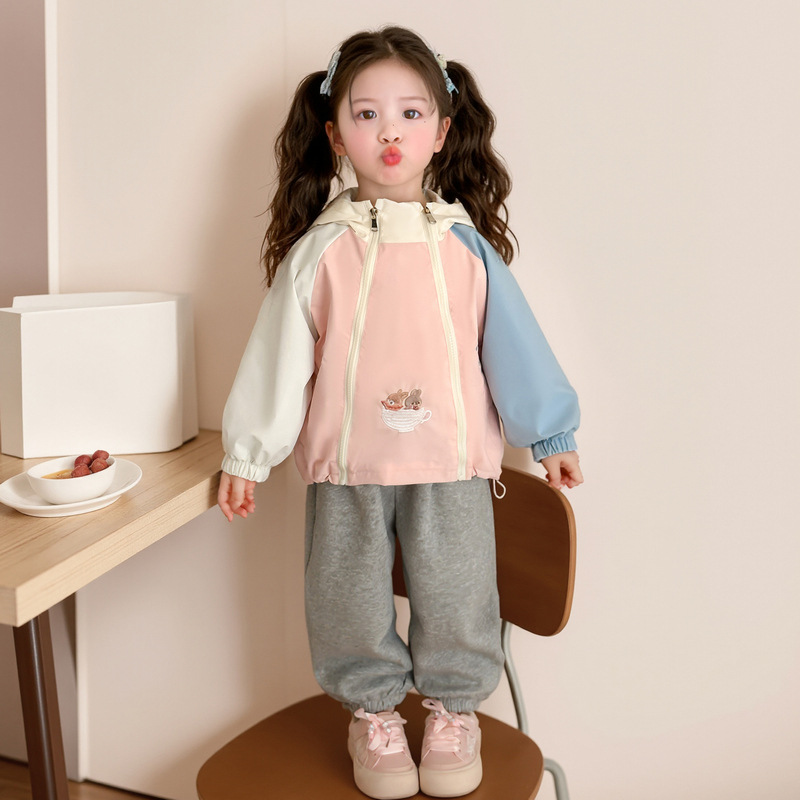 여자 후드 재킷 2025 새로운 도착 소녀 아기 소녀의 외부 착용 재킷 서양식 어린이 캐주얼 재킷 한국식 재킷
