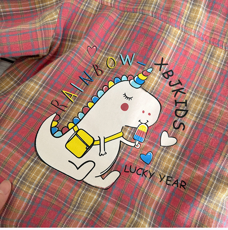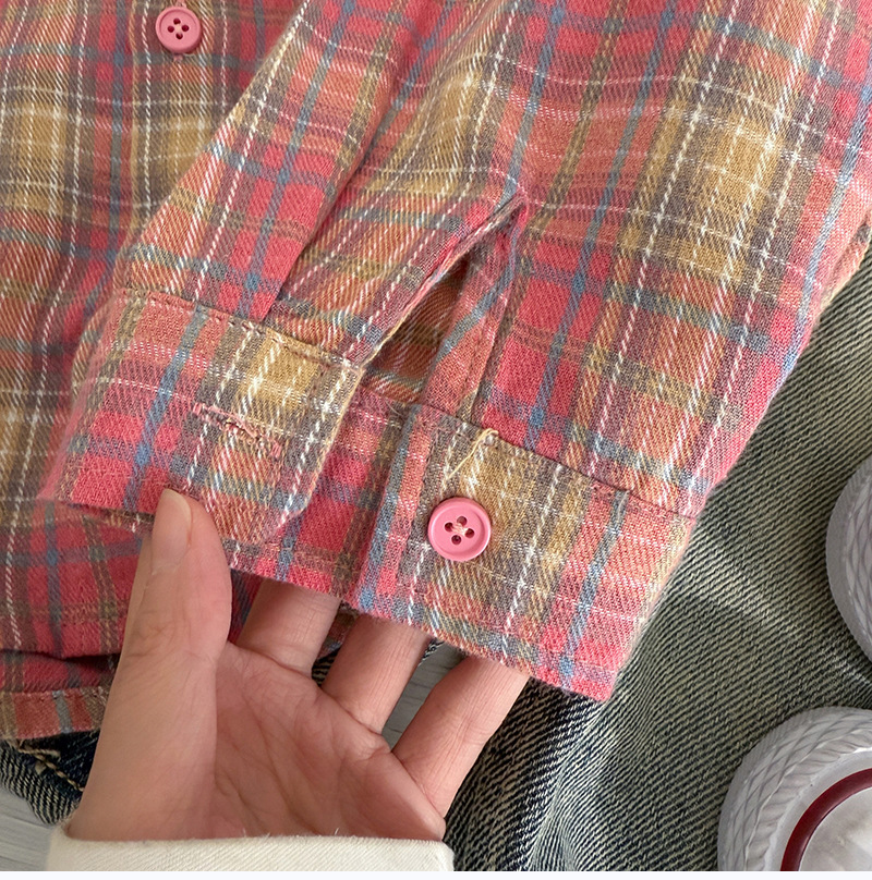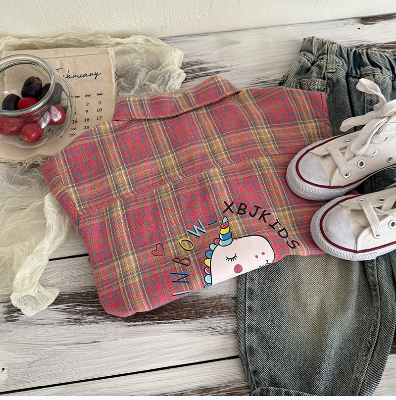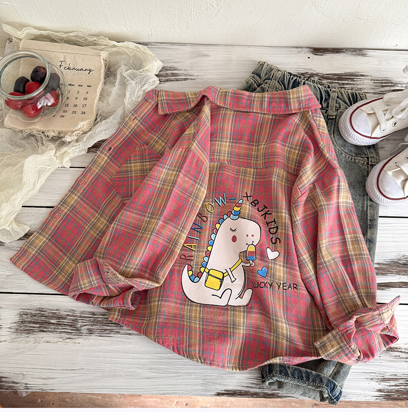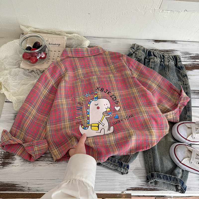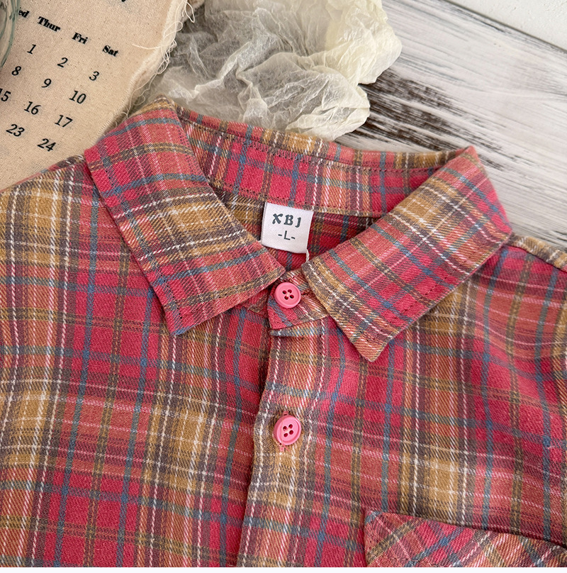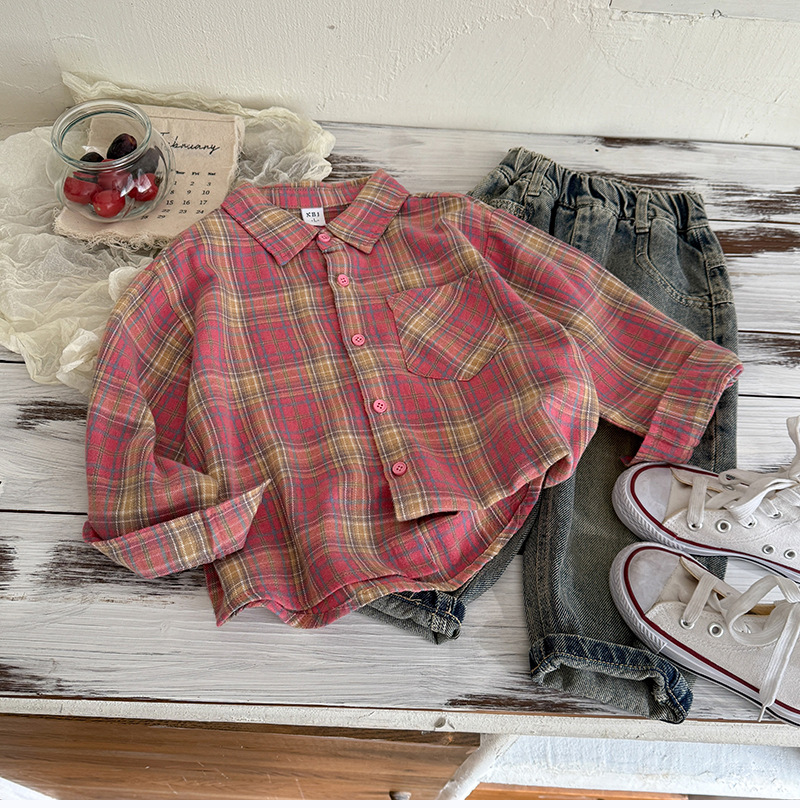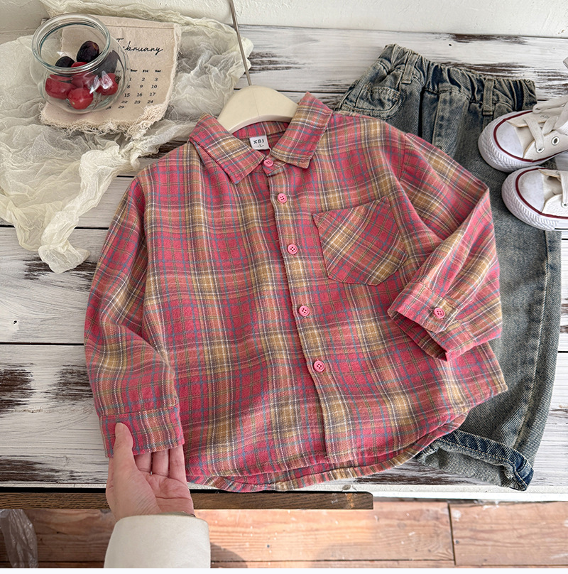 작은 C 급우 소년 격자 무늬 셔츠 어린이 서양식 긴 소매 셔츠 2025 어린이를위한 새로운 봄과 가을 조수