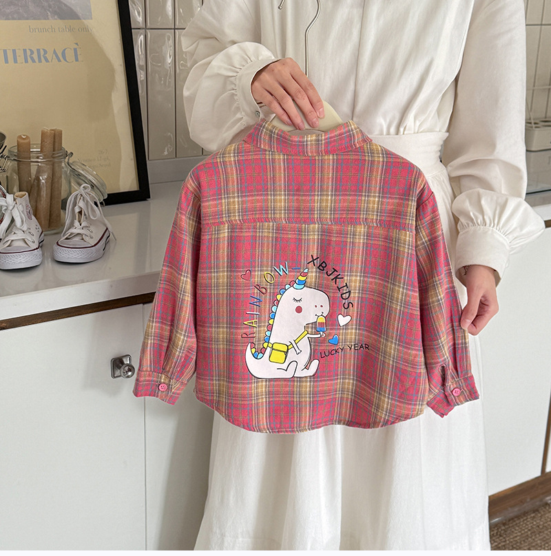 작은 C 급우 소년 격자 무늬 셔츠 어린이 서양식 긴 소매 셔츠 2025 어린이를위한 새로운 봄과 가을 조수스토어 가기