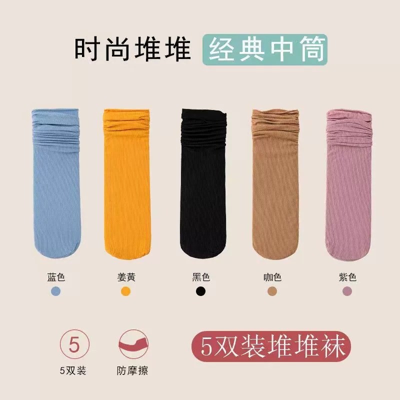 흑백 아이스 양말 여성 여름 얇은 솔리드 컬러 미드 튜브 스택 양말 여름 뼈없는 아이스 실크 스타킹 화이트 양말