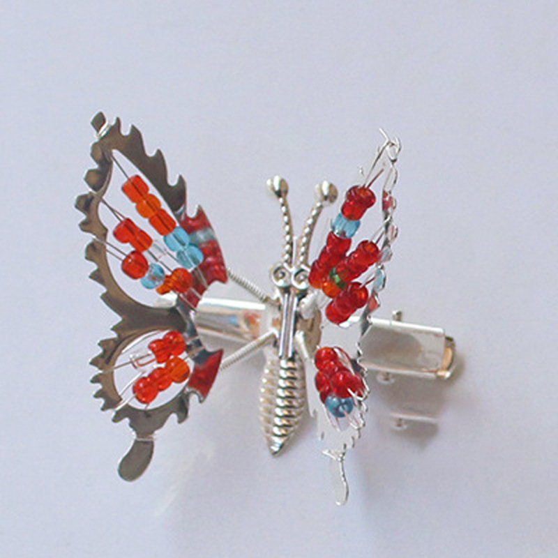 • 실버 - 비즈 나비 머리핀(싱글 팩)