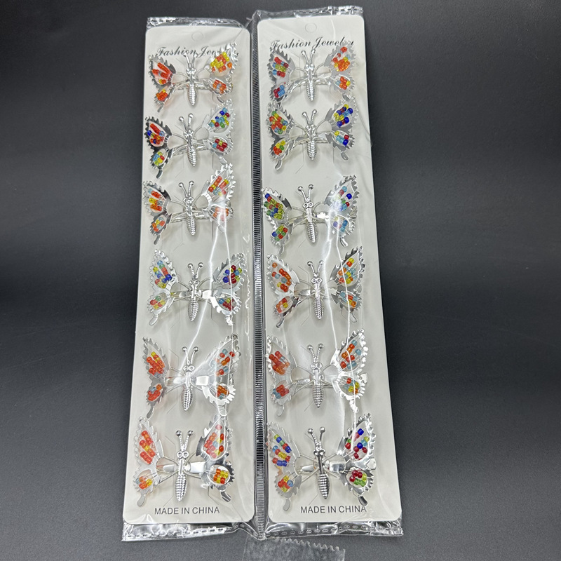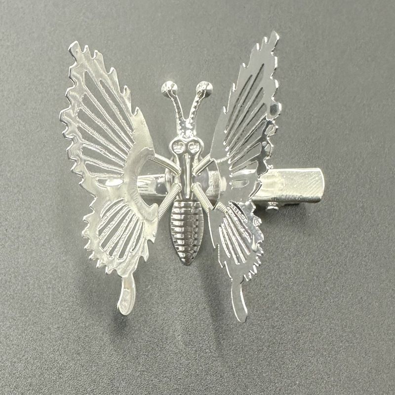 • [골판지 고정-비닐봉지 포장] 실버비즈 나비머리핀(12개입)