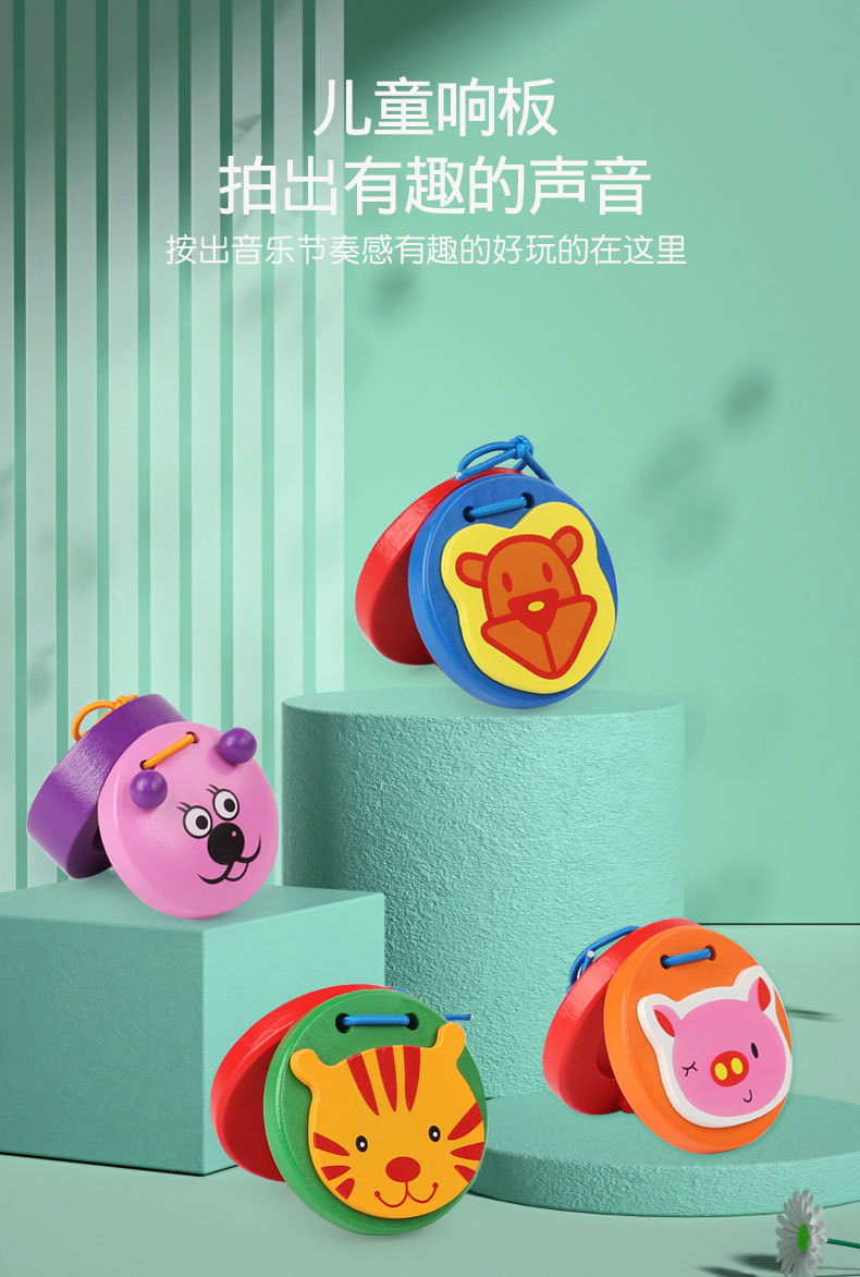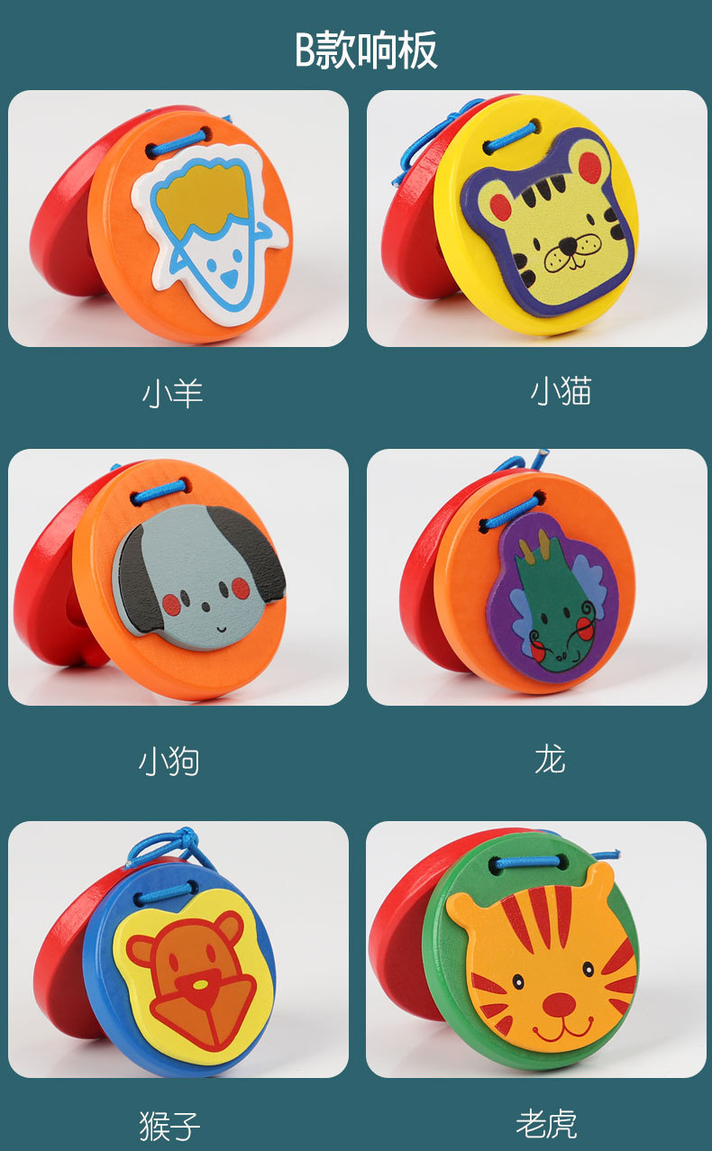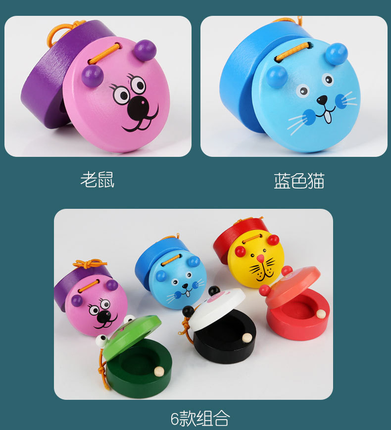 국경 간 나무 어린이 캐스터네츠 Orff 악기 타악기 캐스터네츠 만화 동물 조기 교육 계발 아기 장난감스토어 가기