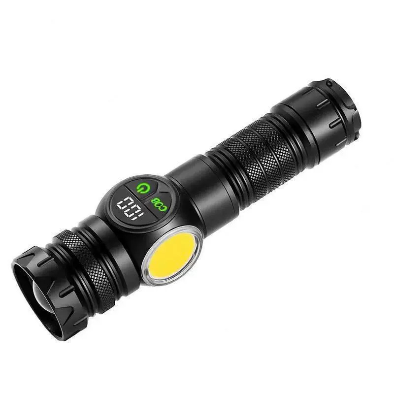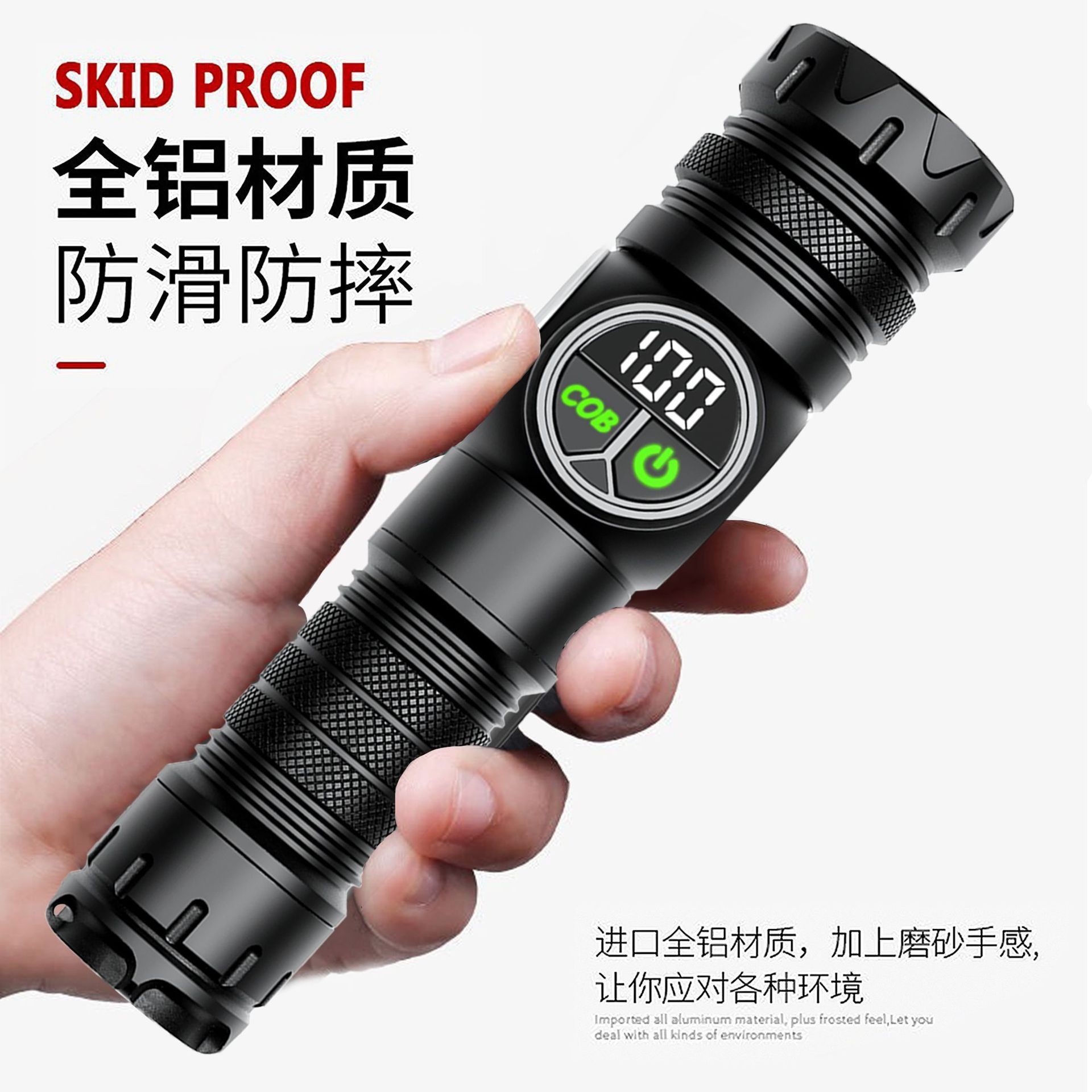 국경 다기능 손전등 전원 디지털 디스플레이 COB 사이드 라이트 휴대용 야외 비상 유지 보수 강한 자기 손전등