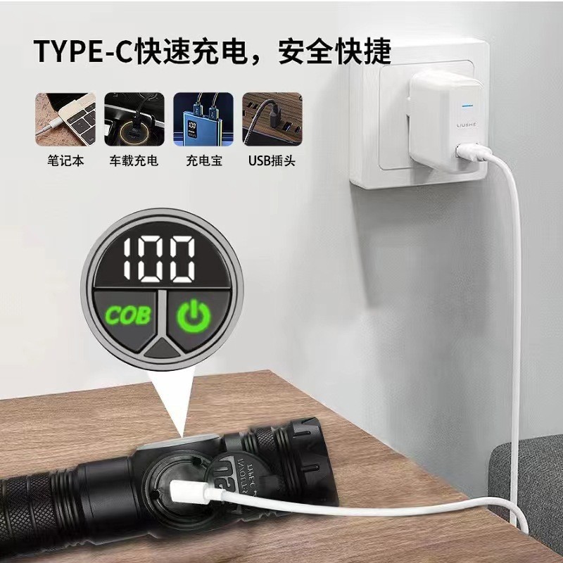 국경 다기능 손전등 전원 디지털 디스플레이 COB 사이드 라이트 휴대용 야외 비상 유지 보수 강한 자기 손전등스토어 가기