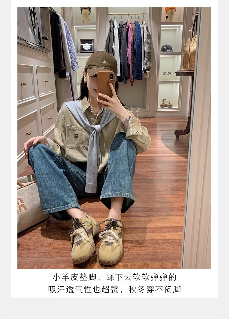 진짜 가죽 레트로 만다린 오리 두꺼운 단독 높이 증가 독일 훈련 신발 여성의 2025 봄 새로운 포레스트 검프 신발 캐주얼 운동화스토어 가기