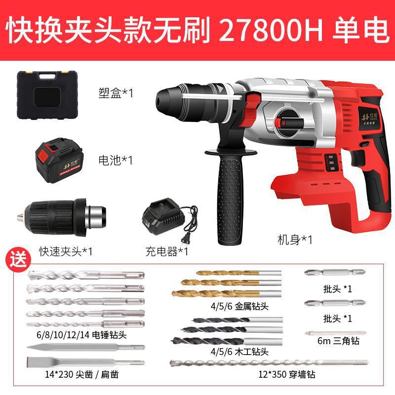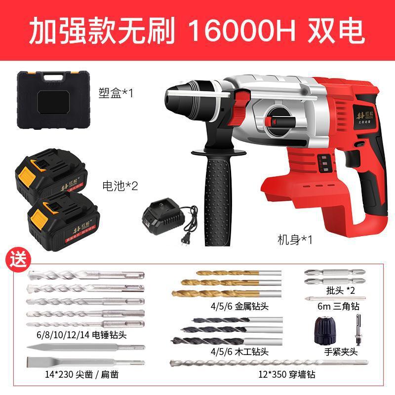 브러시리스 충전식 전기 해머 산업 등급 다기능 리튬 배터리 충격 드릴 고출력 전기 드릴 무거운 전기 선택 3 사용 직접 판매스토어 가기