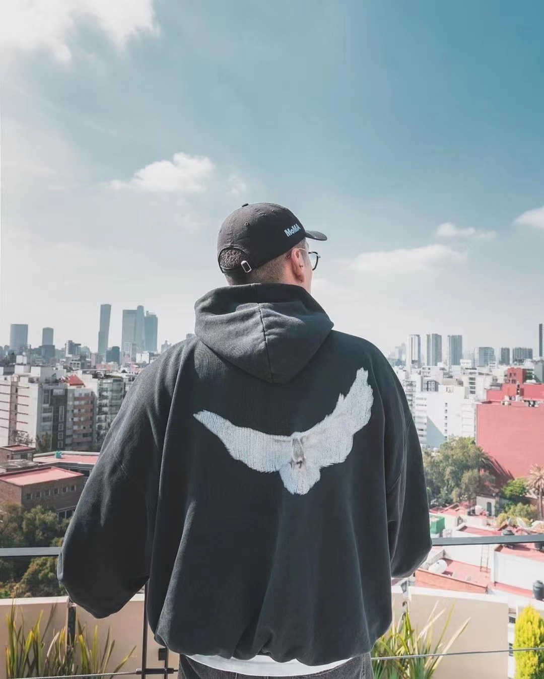 Kanye Kanye Tripartite Joint DOVE Peace Pigeon은 남성과 여성을위한 오래된 후드 헤비 후드 스웨터를 씻었습니다.스토어 가기