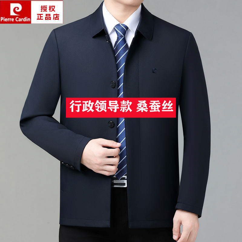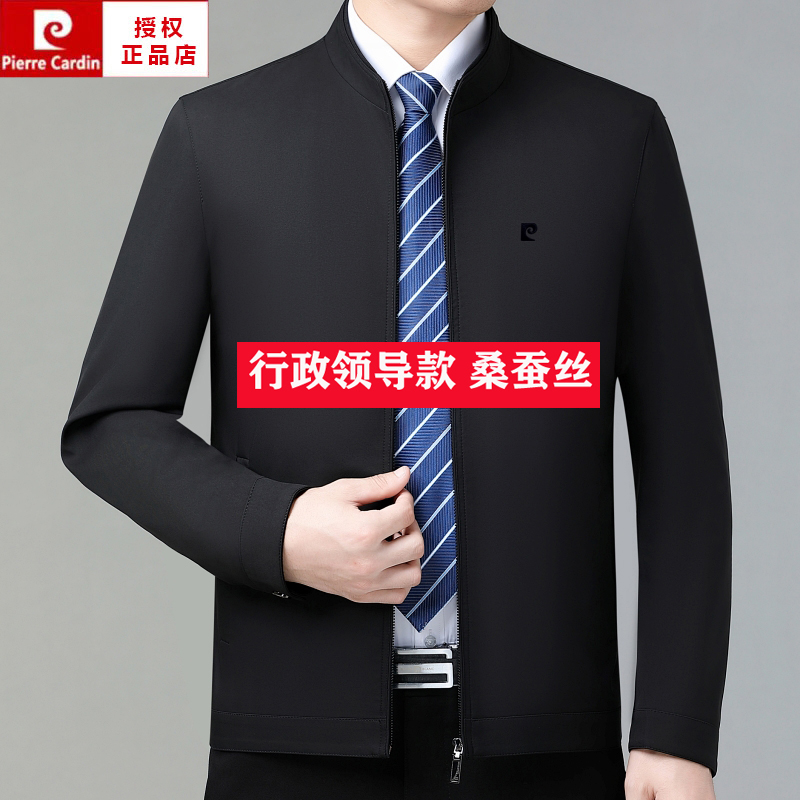 Ly皮尔卡丹夹克衫男桑蚕丝行政干部领导休闲上衣外套加克大码爸爸스토어 가기