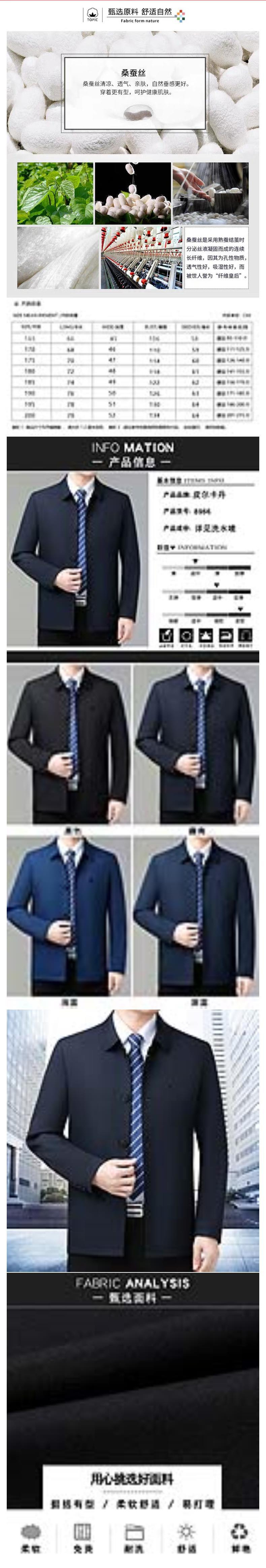 Ly皮尔卡丹夹克衫男桑蚕丝行政干部领导休闲上衣外套加克大码爸爸