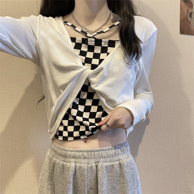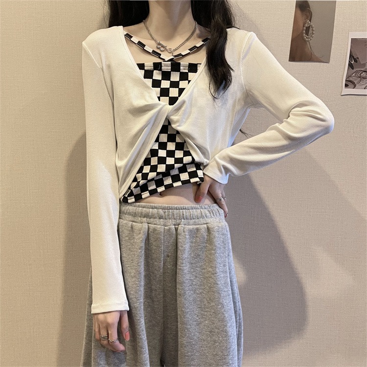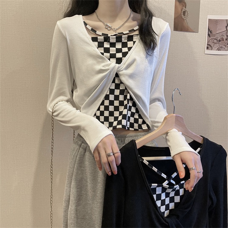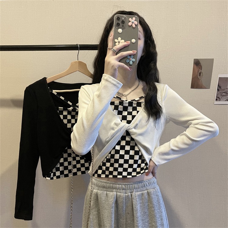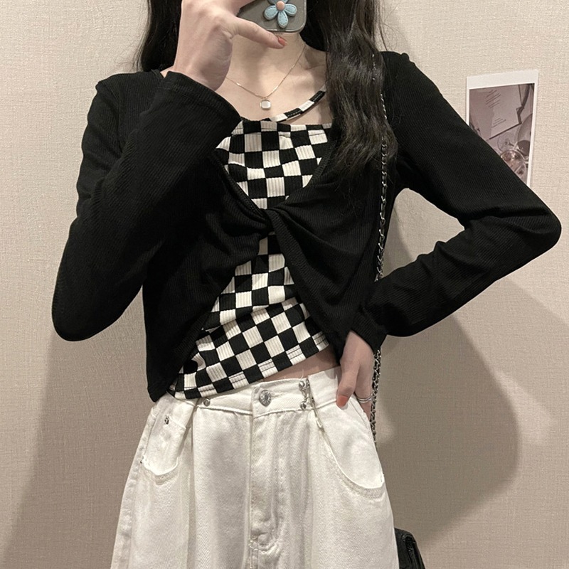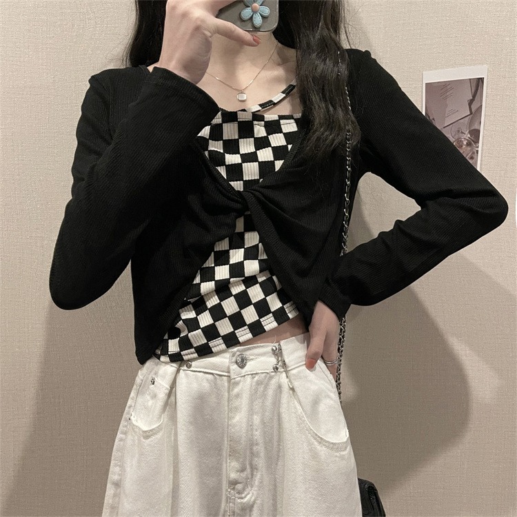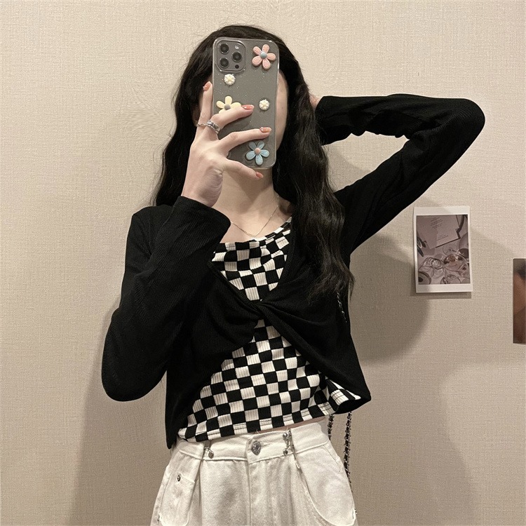 스파이스 걸스 쇼트 탑 여성 디자인 틈새 봄 2023 새로운 순수 한국 세련된 독특한 긴 소매스토어 가기