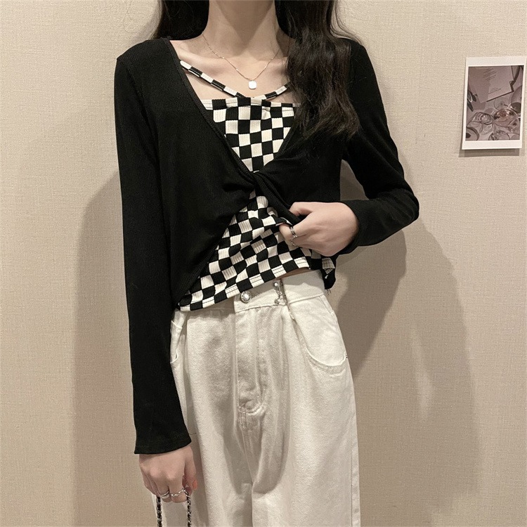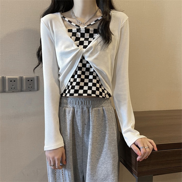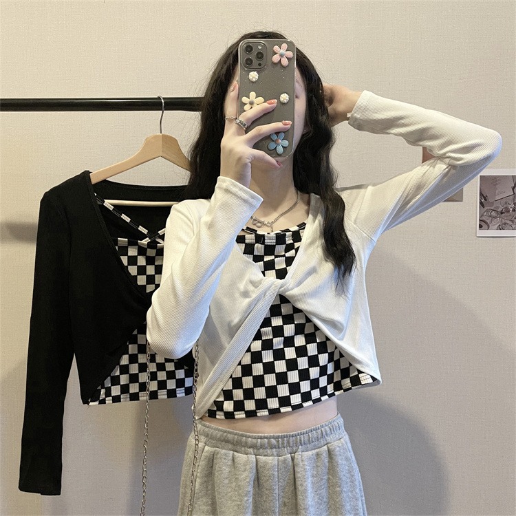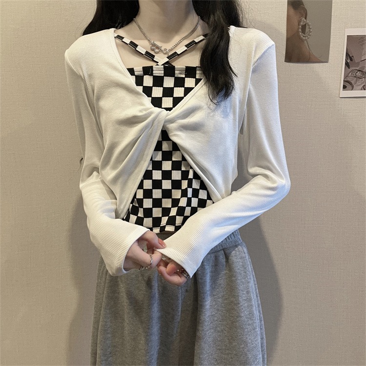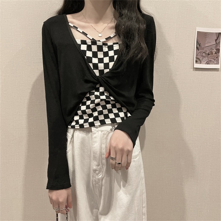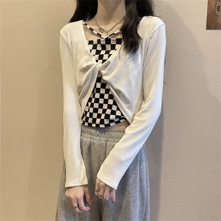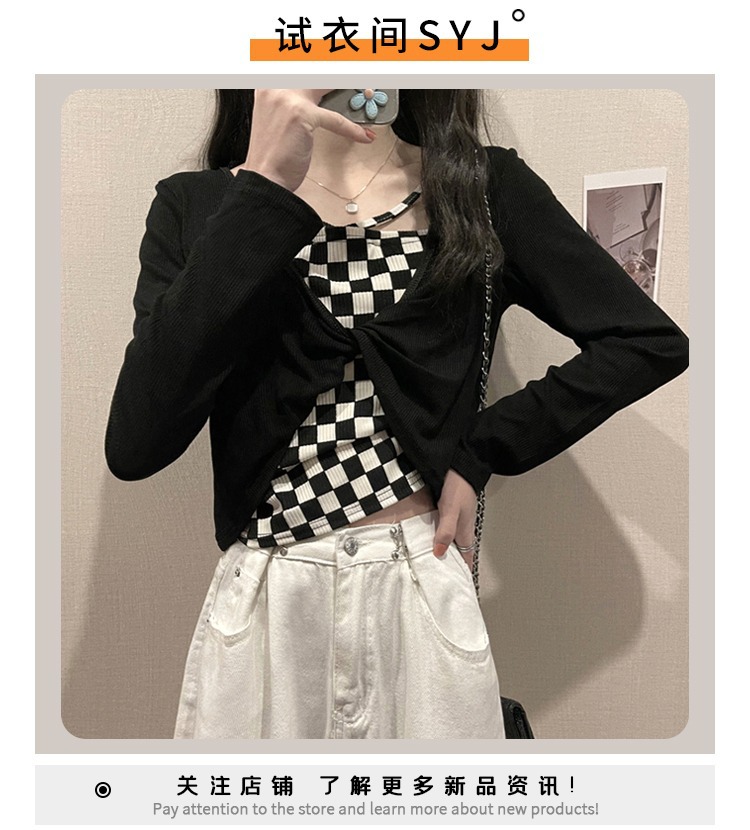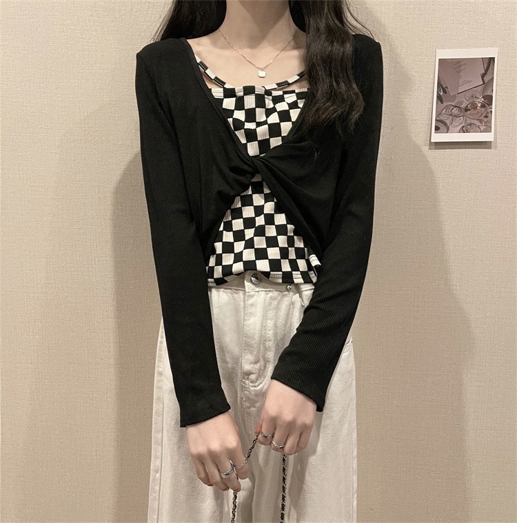 스파이스 걸스 쇼트 탑 여성 디자인 틈새 봄 2023 새로운 순수 한국 세련된 독특한 긴 소매스토어 가기