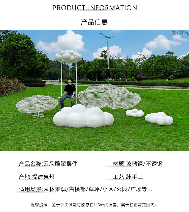 야외 유리 섬유 강화 플라스틱 시뮬레이션 구름 장식 정원 풍경 부동산 커뮤니티 파크 호텔 잔디 장식 조각스토어 가기