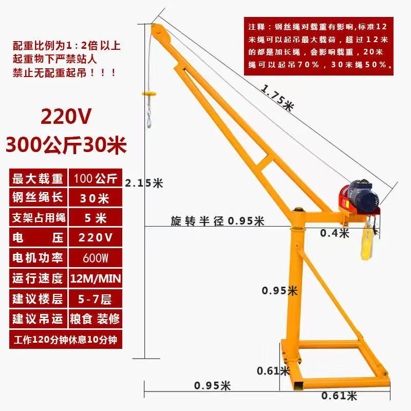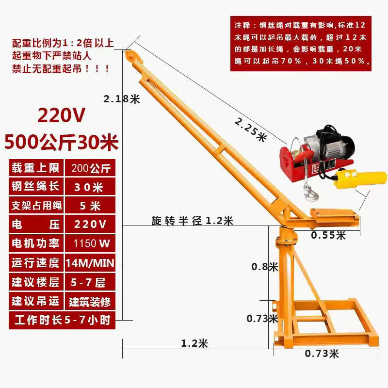 가정용 야외 작은 크레인 크레인 장식 건물 회전 리프팅 크레인 전기 호이스트 220v스토어 가기