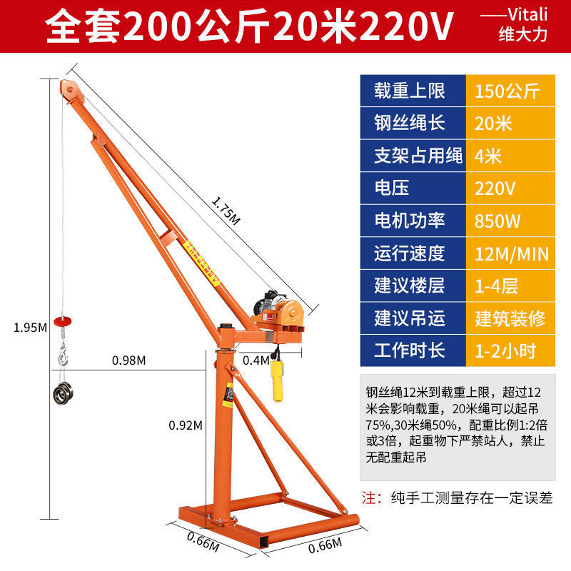 가정용 야외 작은 크레인 크레인 장식 건물 회전 리프팅 크레인 전기 호이스트 220v