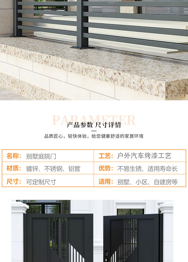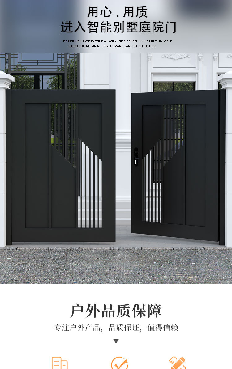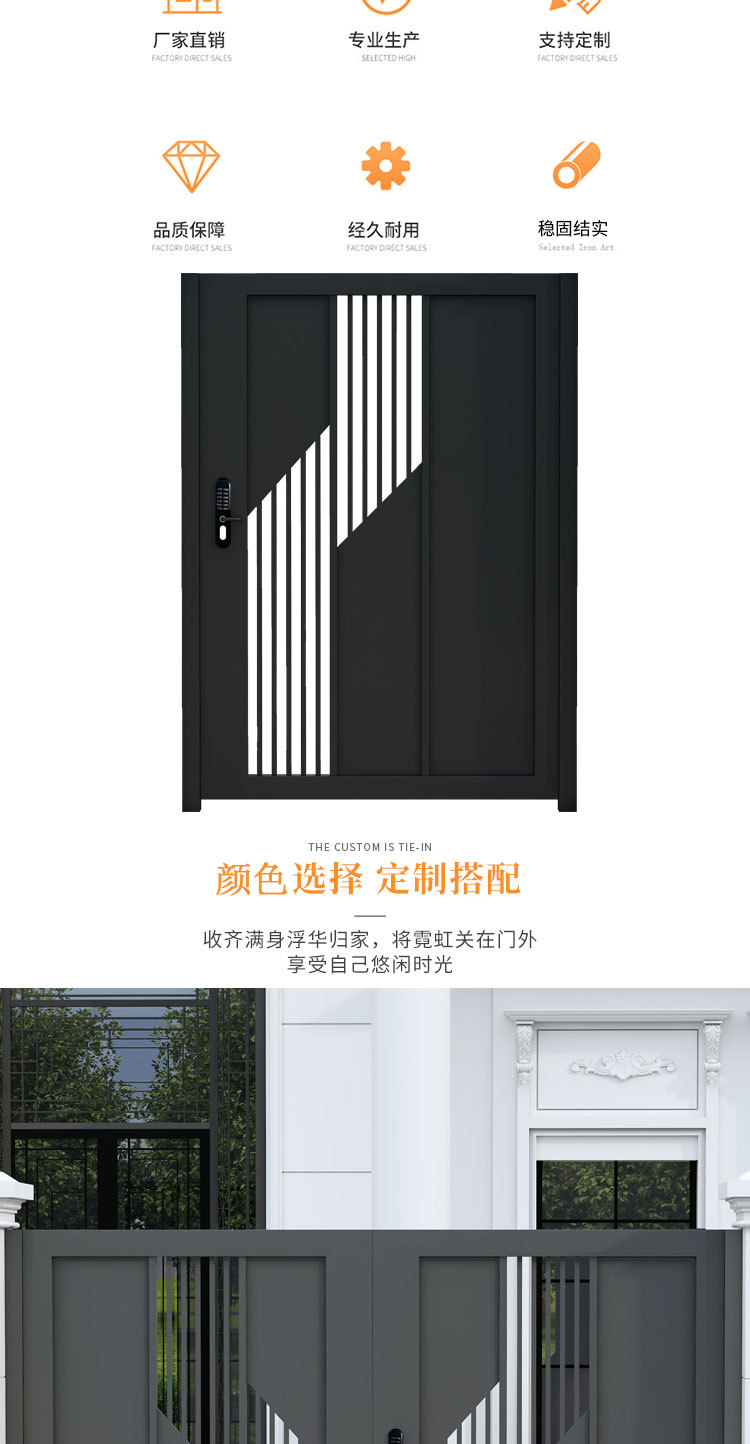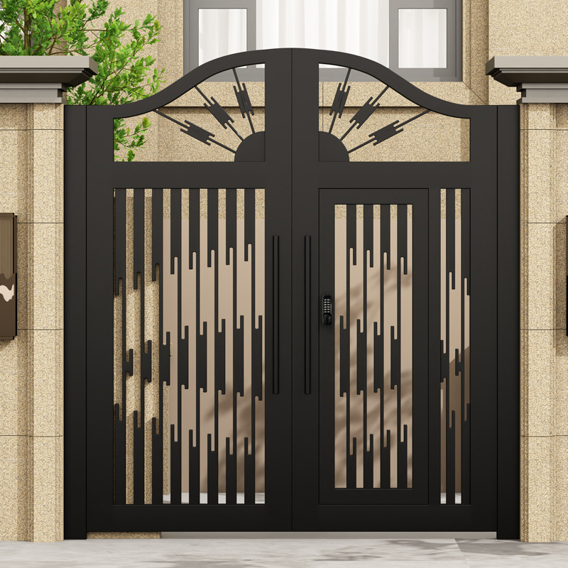 단련 된 철 안뜰 문 알루미늄 빌라 문 스테인레스 스틸 입구 잎 국가 안뜰 문 야외 싱글 더블 도어