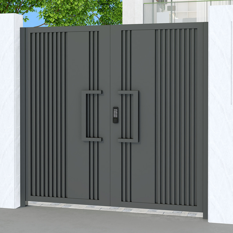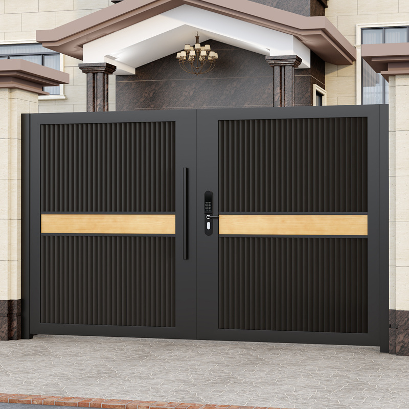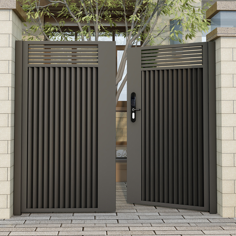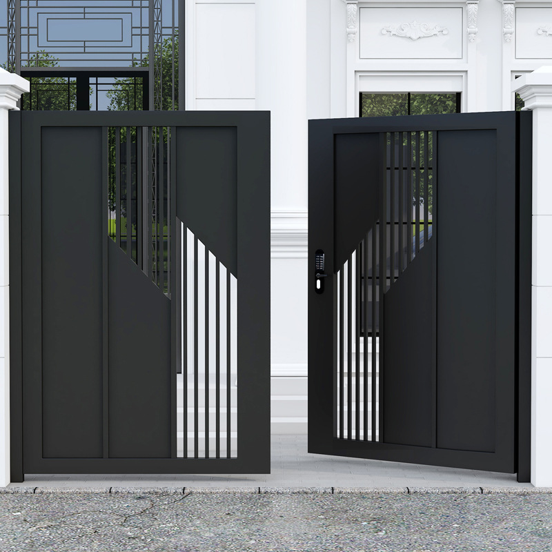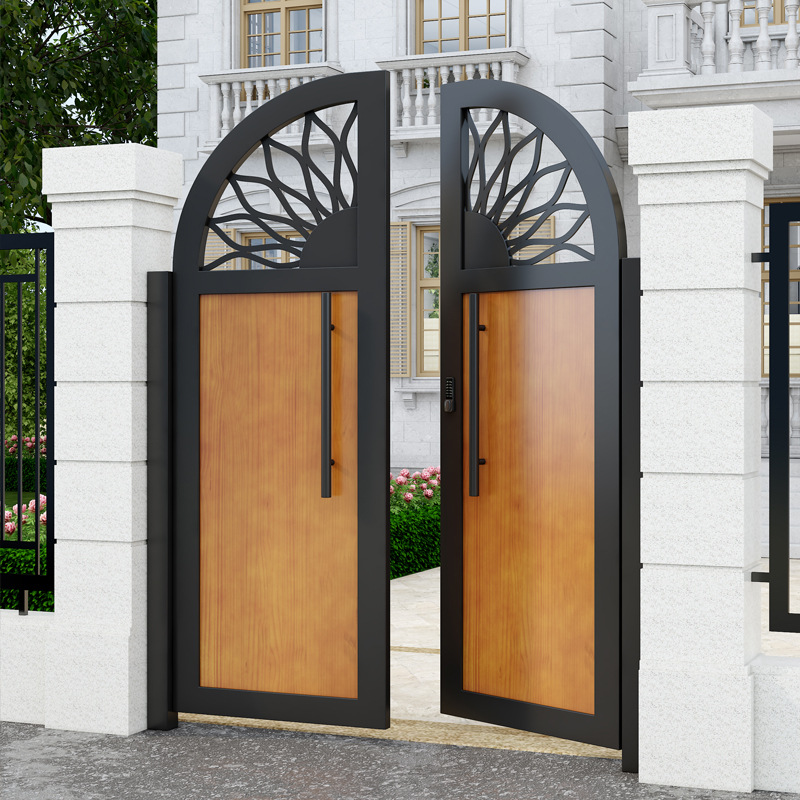 단련 된 철 안뜰 문 알루미늄 빌라 문 스테인레스 스틸 입구 잎 국가 안뜰 문 야외 싱글 더블 도어스토어 가기