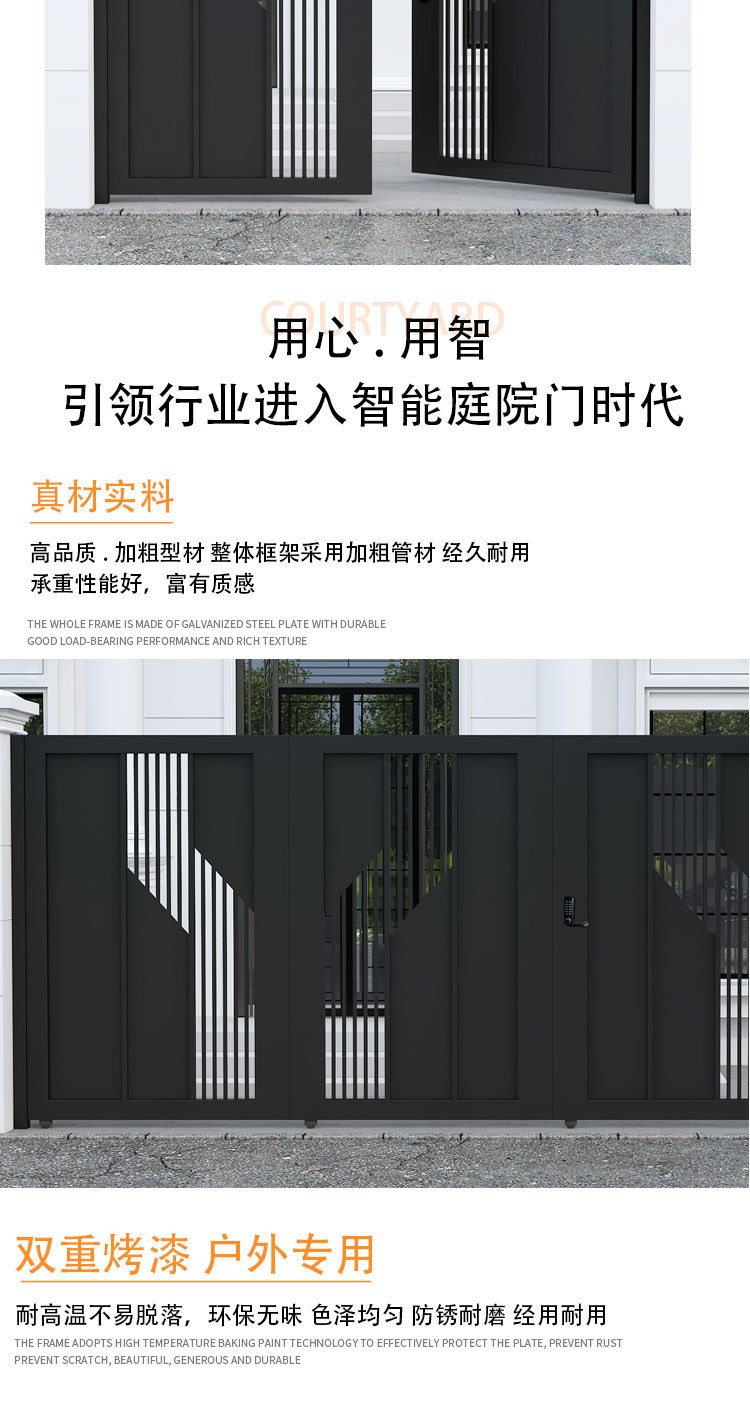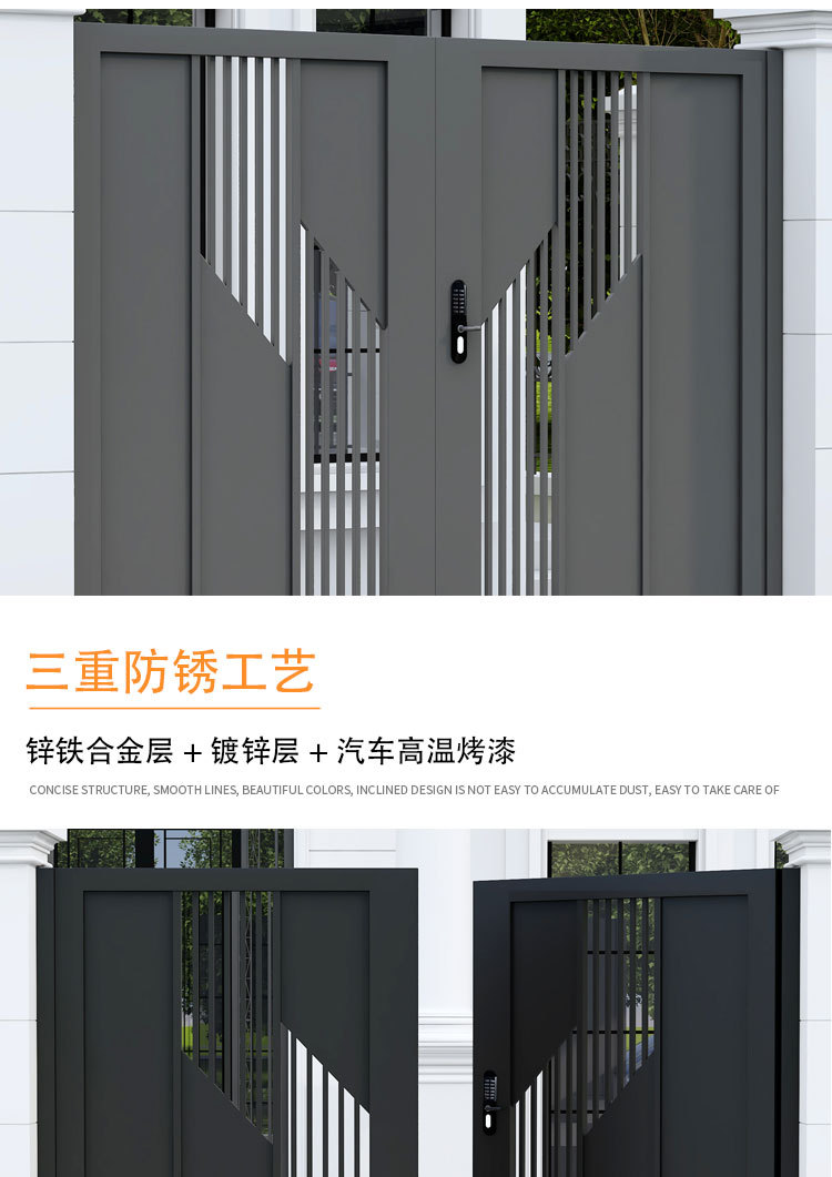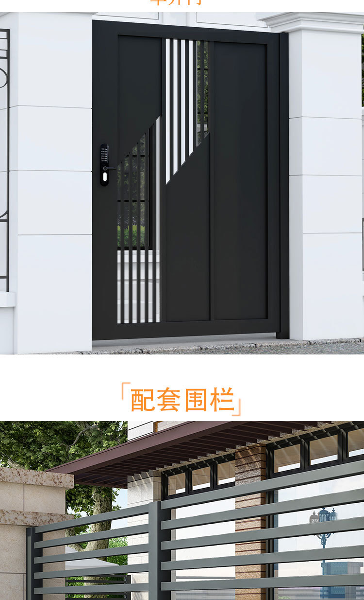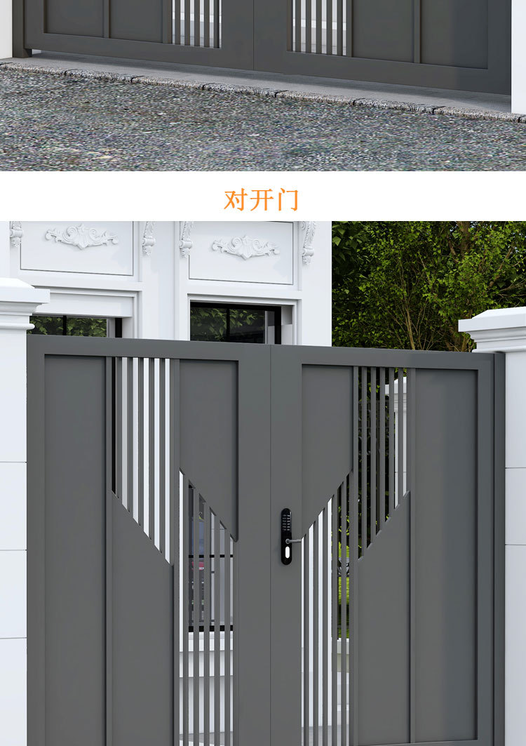 단련 된 철 안뜰 문 알루미늄 빌라 문 스테인레스 스틸 입구 잎 국가 안뜰 문 야외 싱글 더블 도어스토어 가기