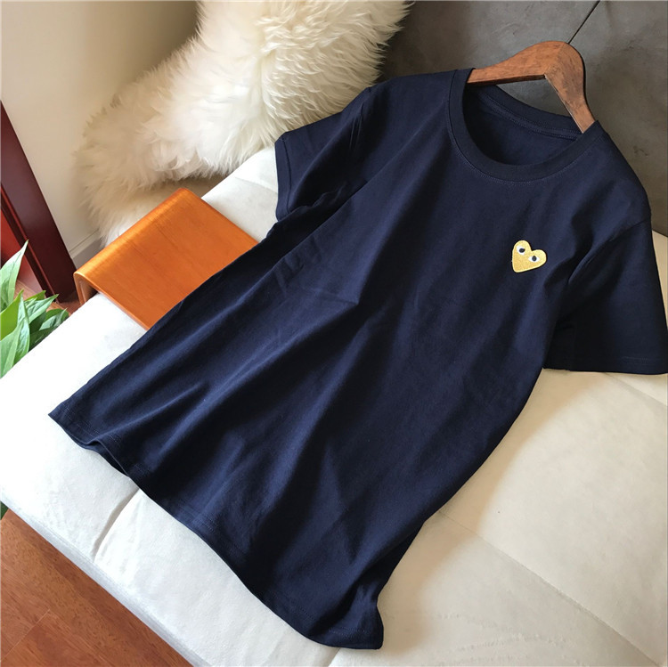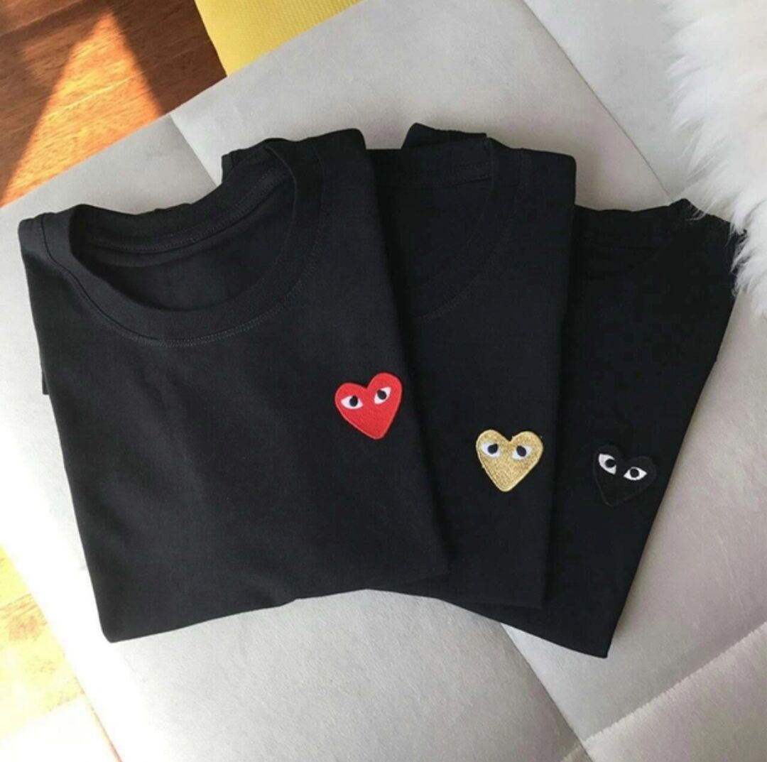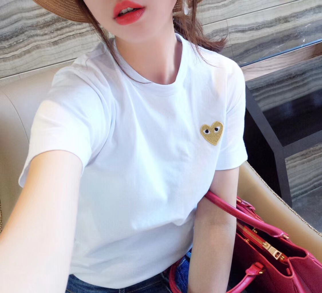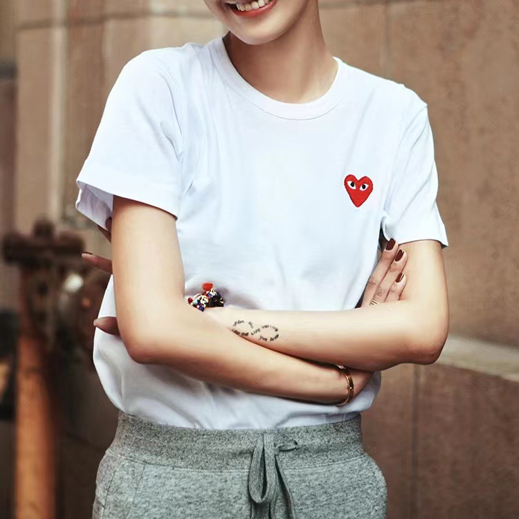 어깨 반팔 티셔츠 남녀 둥근 목 여름 자수 사랑 패션 브랜드 퓨어 코튼 반팔 티셔츠