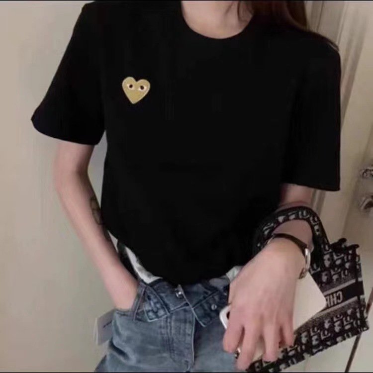 어깨 반팔 티셔츠 남녀 둥근 목 여름 자수 사랑 패션 브랜드 퓨어 코튼 반팔 티셔츠스토어 가기