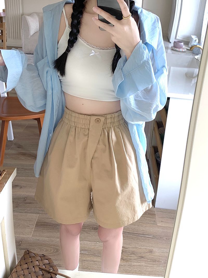 여름 여성 의류 순면 반바지 여성의 간단한 폐기물 지구 스타일 넓은 다리 바지 캐주얼 통근 유행 5 점 스포츠 바지