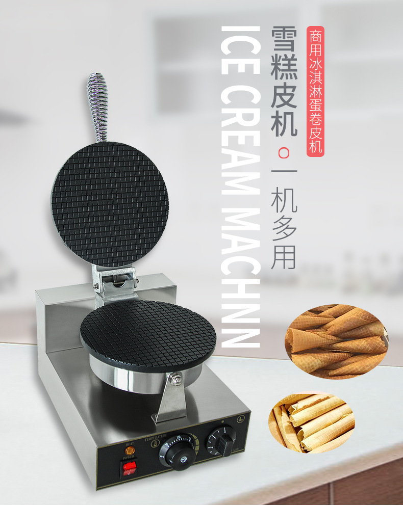 Wanzhuo 아이스크림 가죽 기계 상업 계란 롤 기계 수제 아이스크림 바삭한 닭고기 달걀 롤 기계 스톨 콘 계란 콘 기계스토어 가기