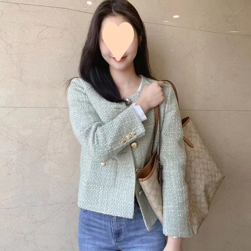 봄과 가을 향기로운 스타일 여성 코트 우아한 사교계 새로운 패션 올 매치 향기로운 스타일 라운드 넥 쇼트 2025 프랑스 탑스토어 가기
