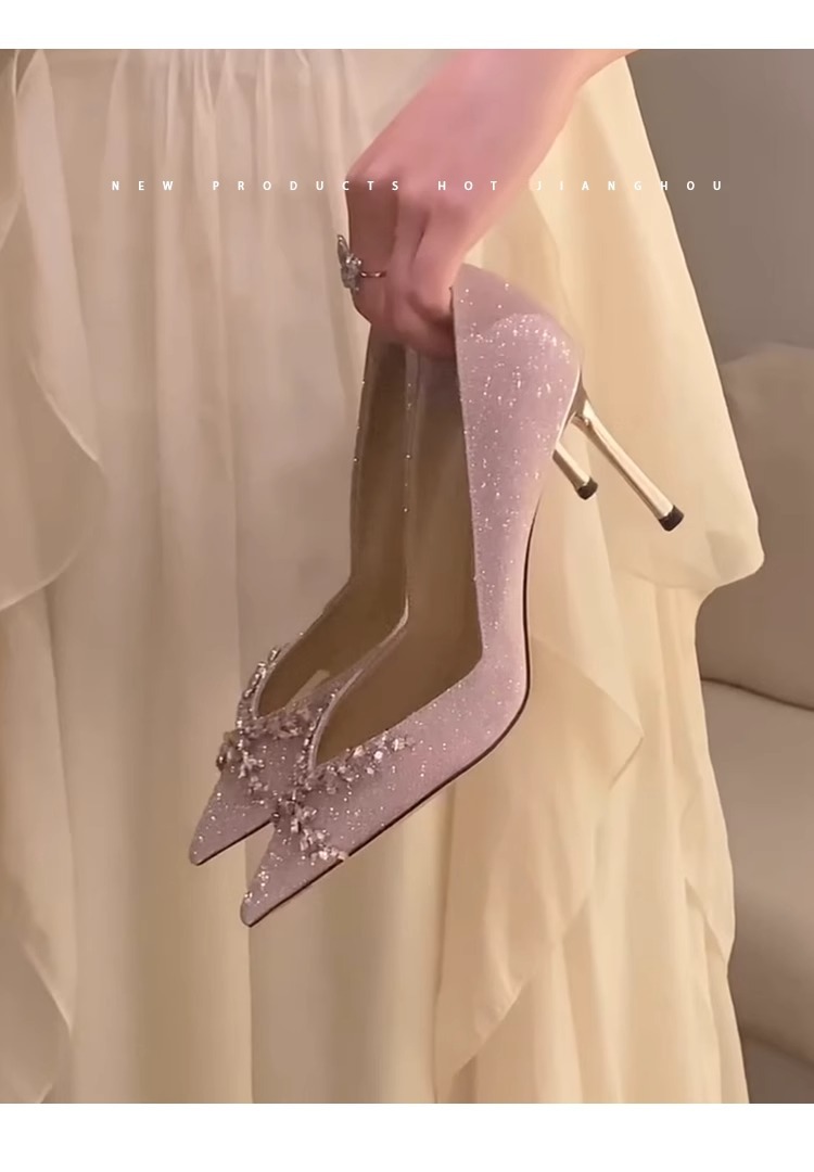 웨딩 원피스 스틸레토 힐 라인 스톤 기질 사교계 하이힐 스틸레토 플래시 요정 스타일 신발 슈퍼 하이힐과 아름다운 결혼식 신발스토어 가기
