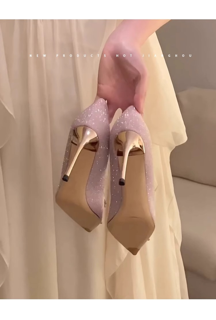 웨딩 원피스 스틸레토 힐 라인 스톤 기질 사교계 하이힐 스틸레토 플래시 요정 스타일 신발 슈퍼 하이힐과 아름다운 결혼식 신발