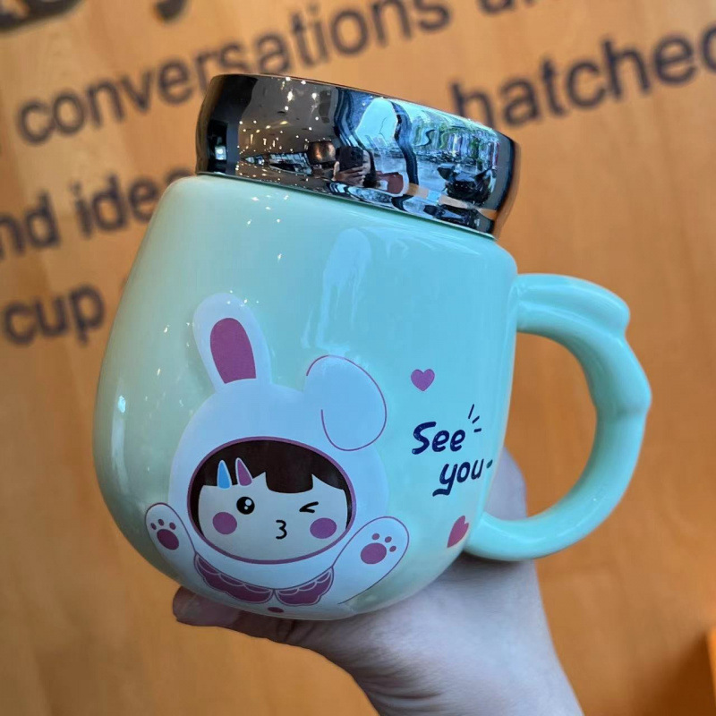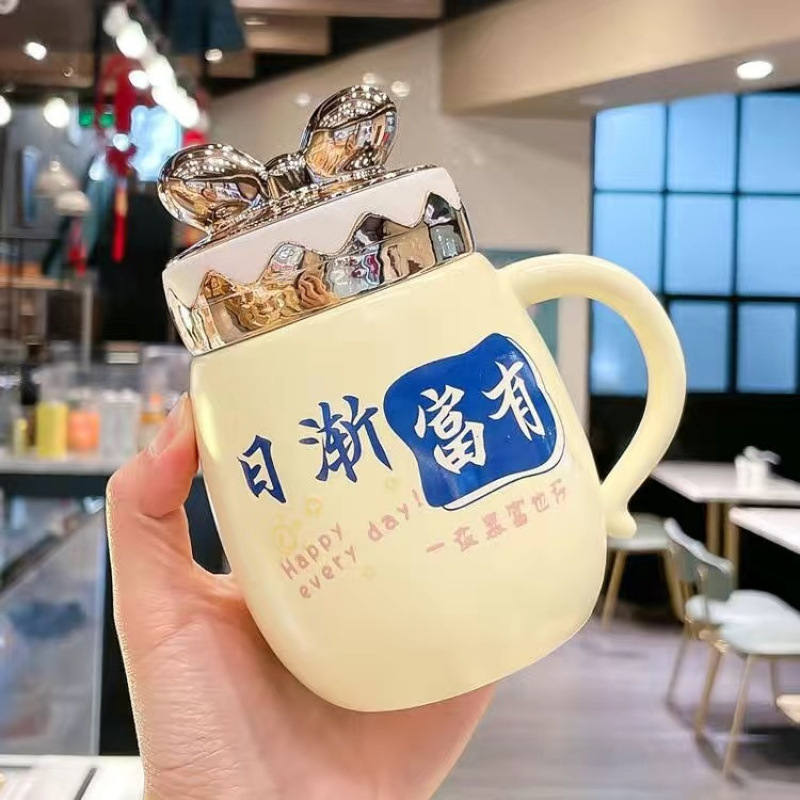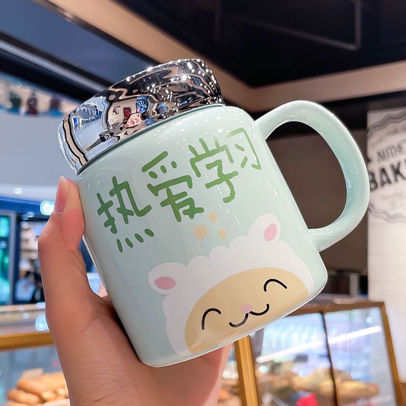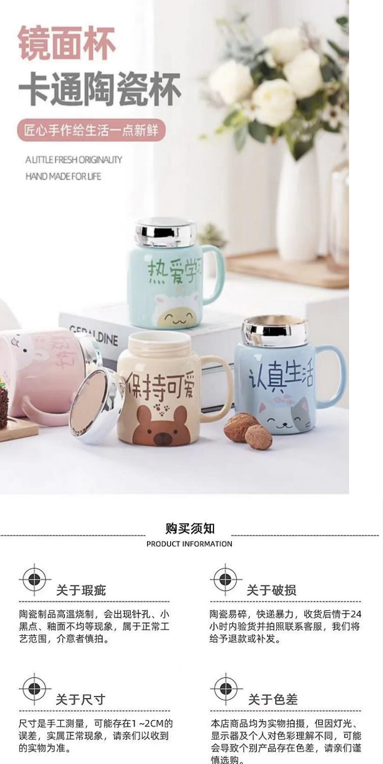 뚜껑 머그잔 마시는 컵과 바람 세라믹 컵 어린이 귀여운 물 컵 학생 커플 높은 색상 값 거울 컵스토어 가기