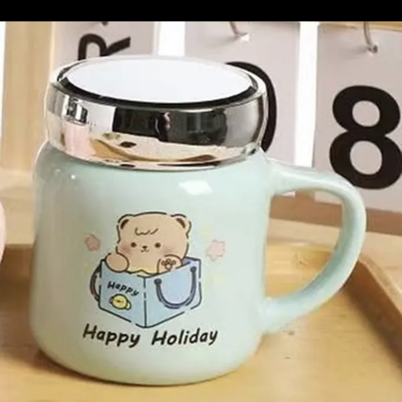 뚜껑 머그잔 마시는 컵과 바람 세라믹 컵 어린이 귀여운 물 컵 학생 커플 높은 색상 값 거울 컵