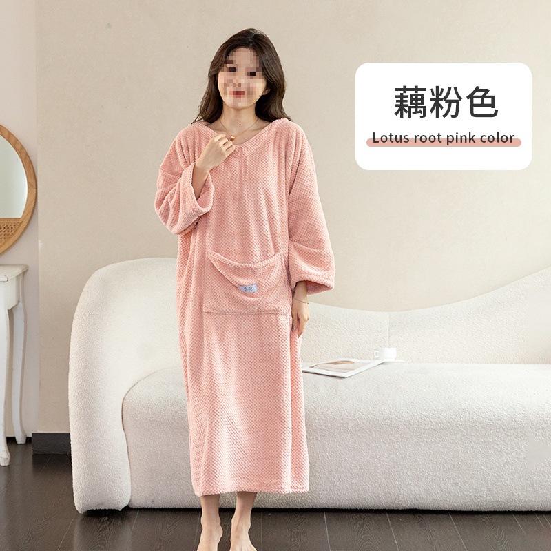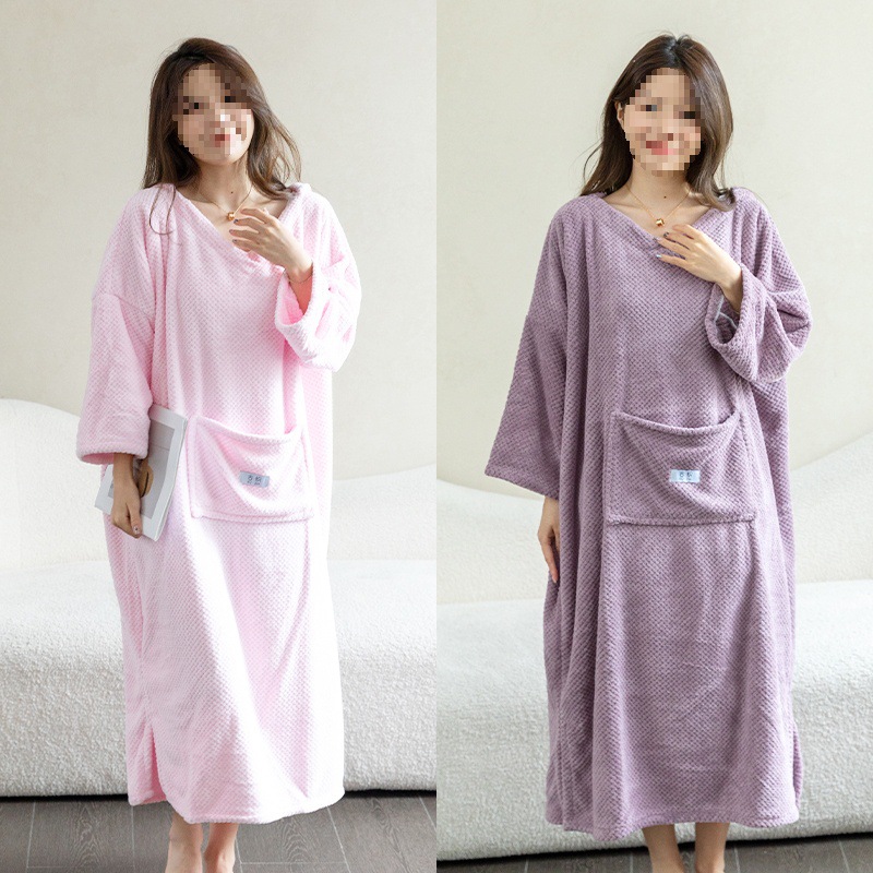 목욕 타월 여성의 가정 착용 및 포장 2024 새로운 가을과 겨울 면화 흡수성 성인 목욕 원피스 목욕 가운스토어 가기