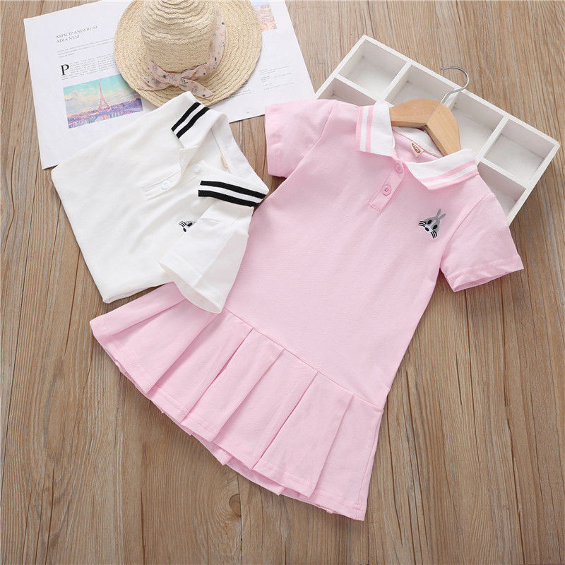 여자 여름 원피스 2019 새로운 스타일 아기 폴로 스커트 중소 어린이 면화 짧은 소매 스커트 조수