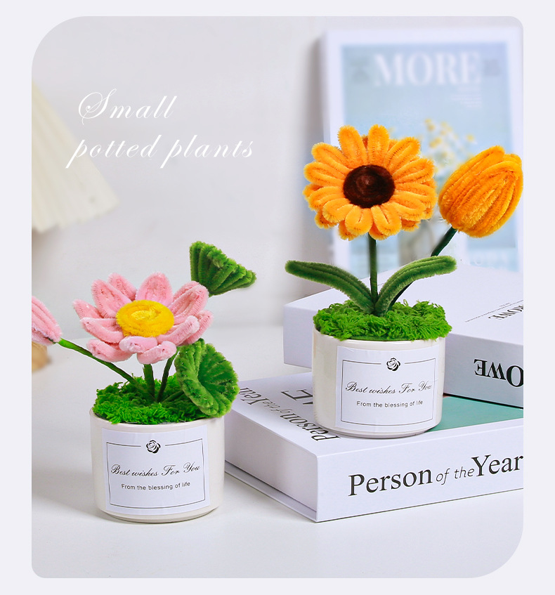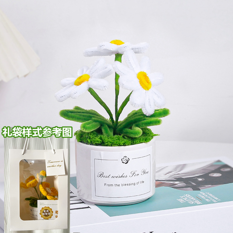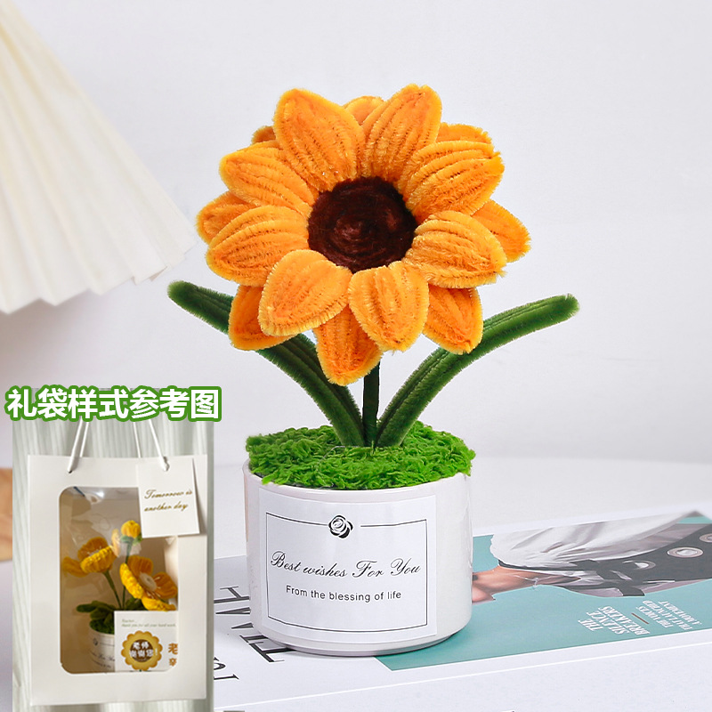트위스트 바 수제 DIY 꽃다발 소재 가방 작은 화분 완성 된 해바라기 장미 유치원 교사의 날 선물