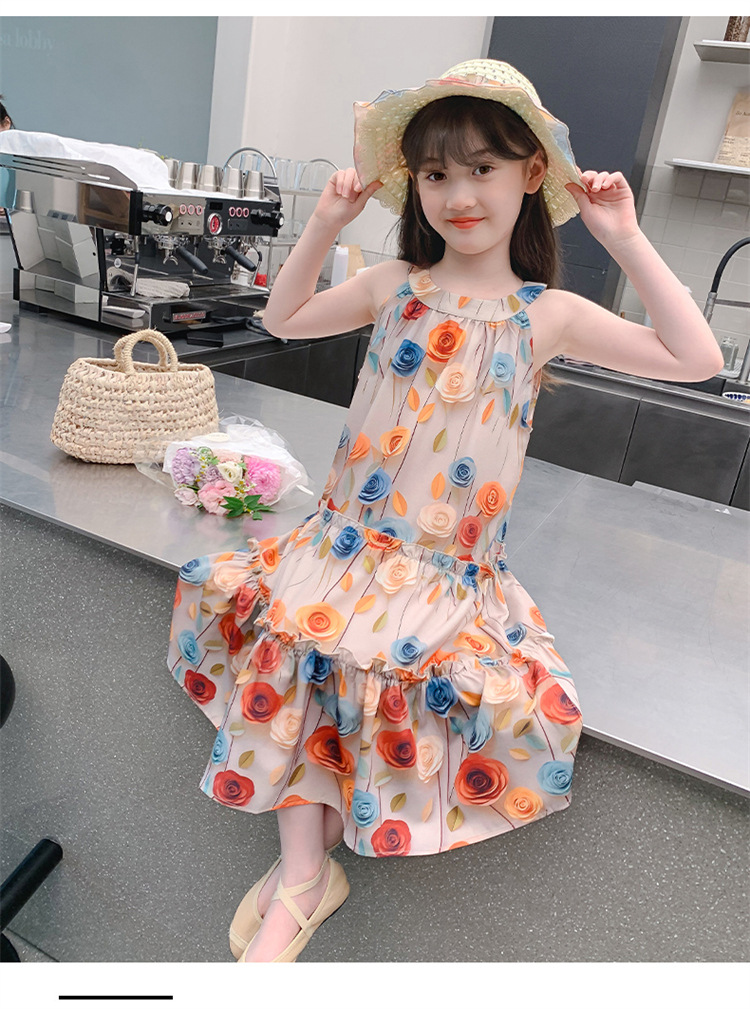소녀 슬링 원피스 여름 2025 새로운 어린이 비치 스커트 여름 원피스 소녀 유행 공주 원피스 서양식스토어 가기