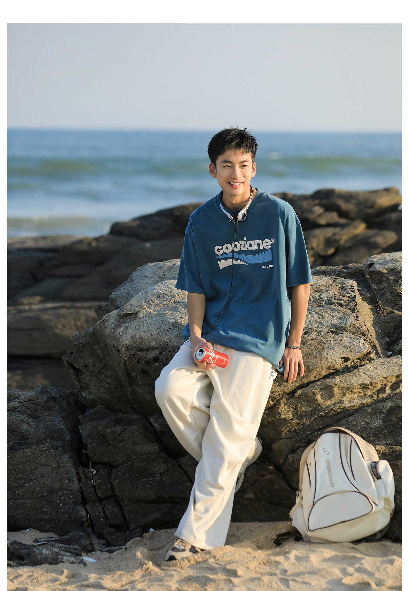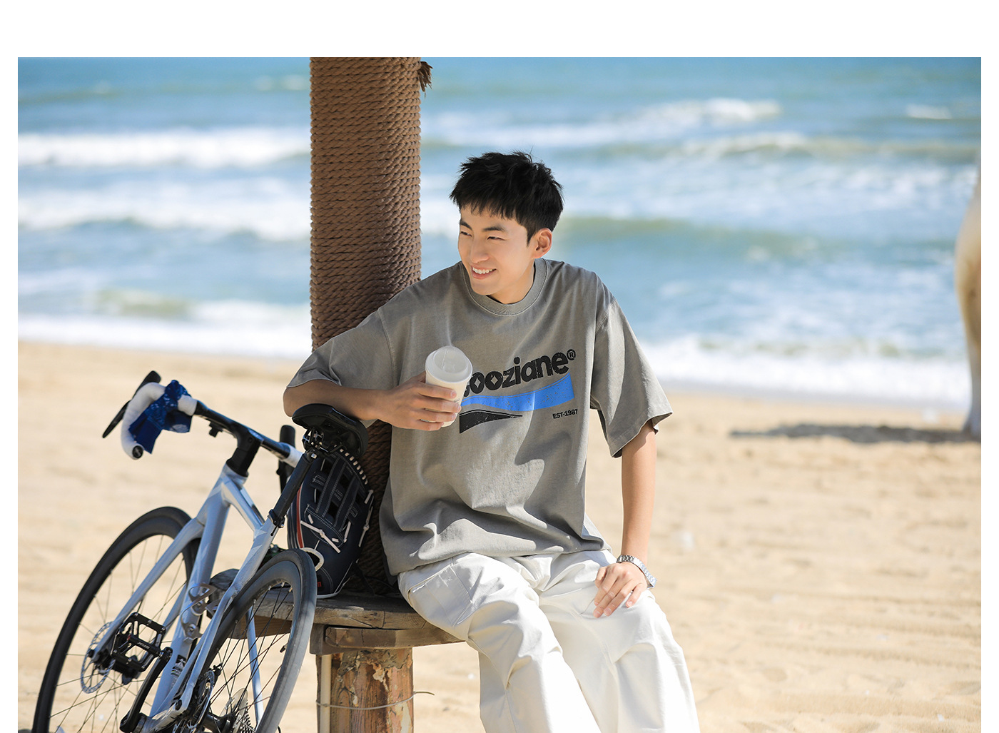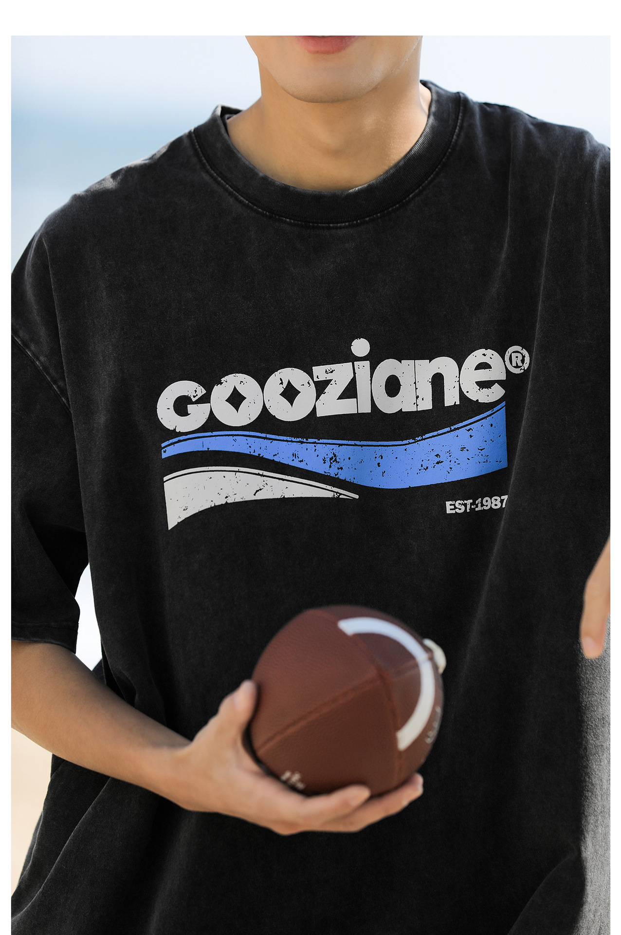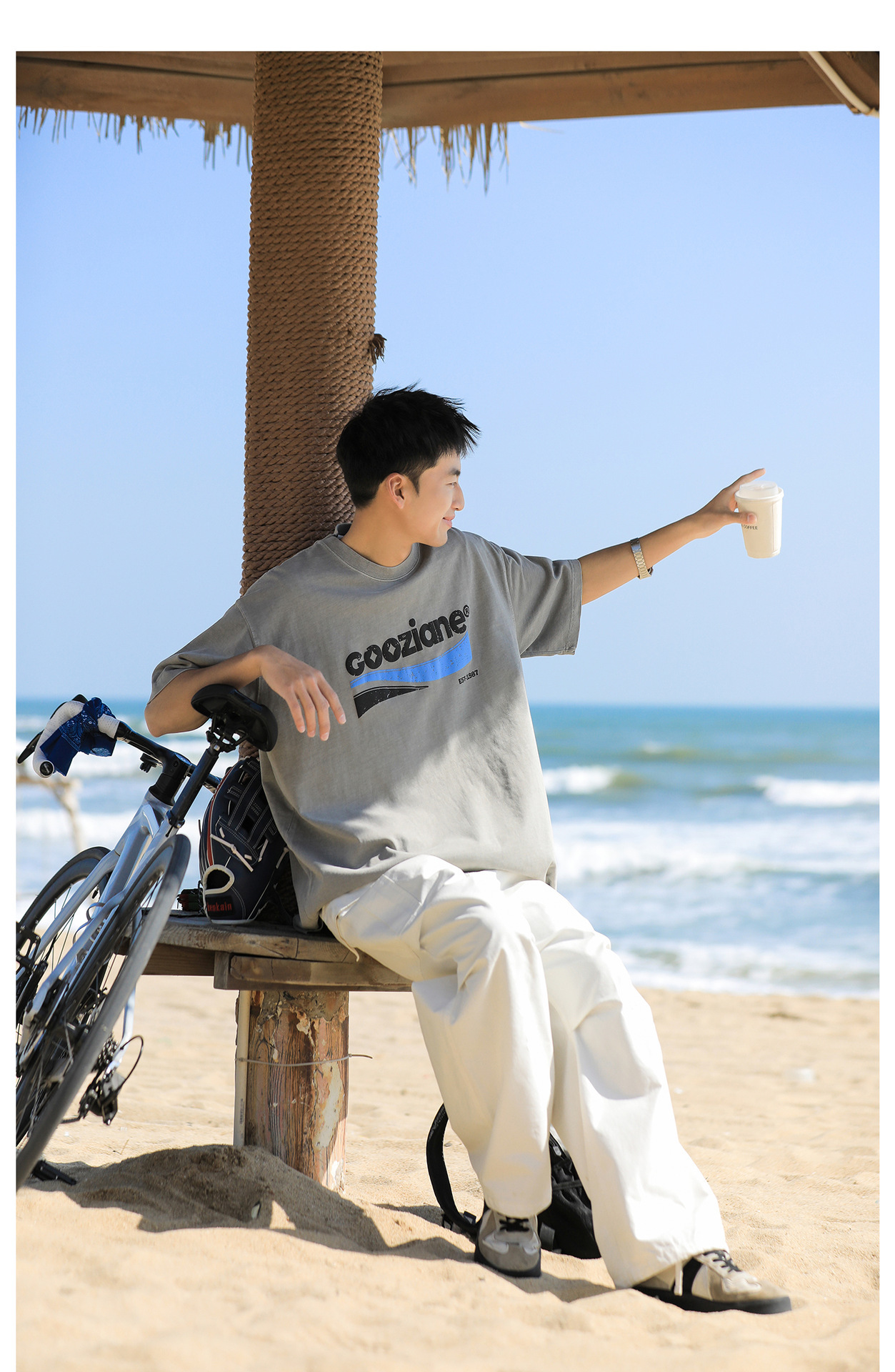 공장 직접 공급 220g 무거운 인쇄 세척 짧은 소매 티셔츠 남성 2025 여름 미국 복고풍 소년 반소매