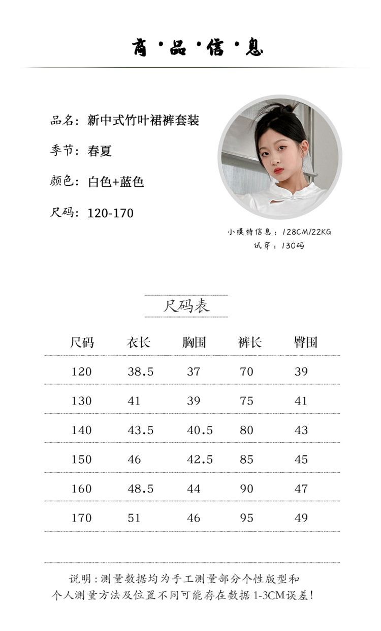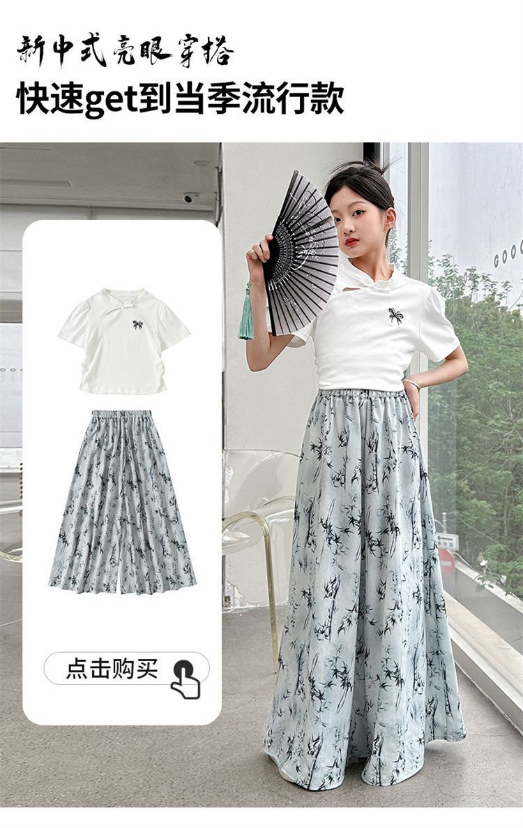 새로운 어린이 투피스 세트 2025 중국 스타일 큰 어린이 여름 잉크 그림 소녀의 여름 세트스토어 가기
