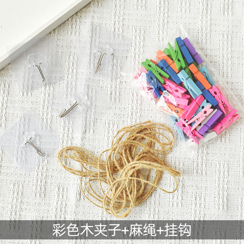 • 40가지 색상의 나무 클립 + 10m 대마 로프 + 끈끈한 고리 6개