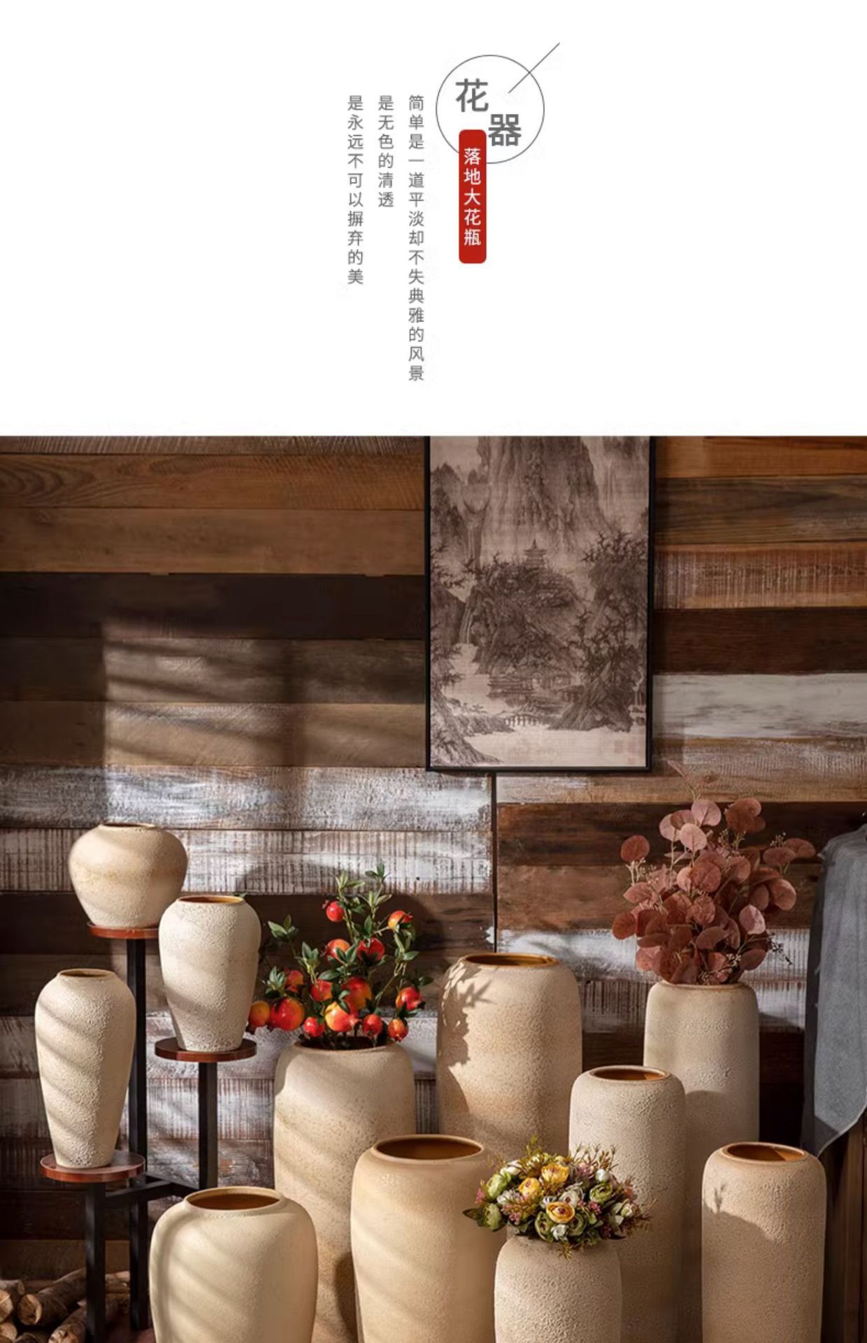 Jingdezhen 바닥 세라믹 대형 꽃병 레트로 향수 수제 굵은 냄비 거실 호텔 풍수 장식품스토어 가기
