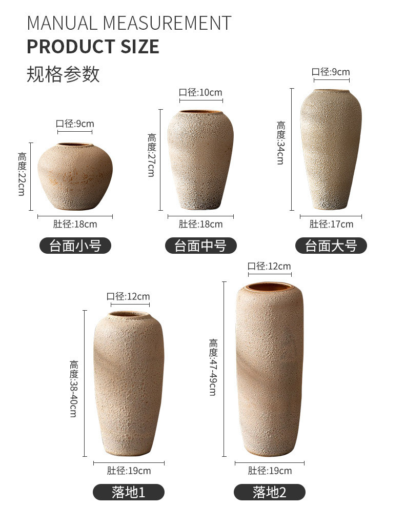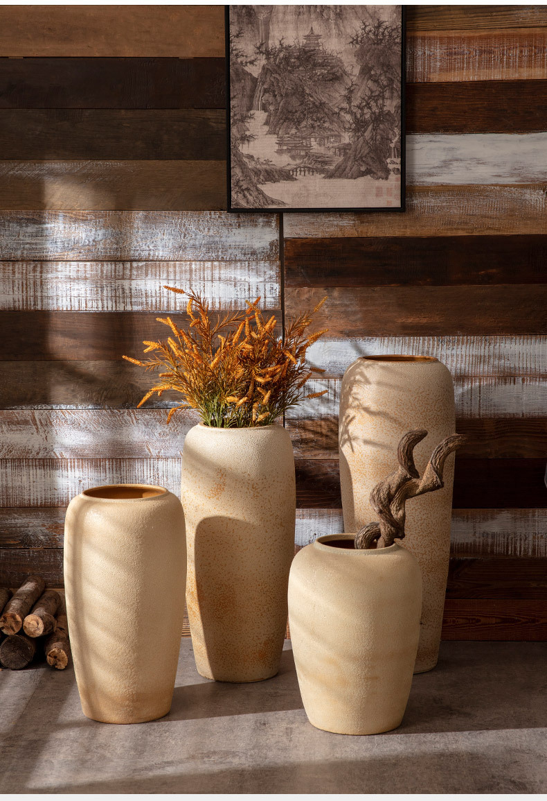 Jingdezhen 바닥 세라믹 대형 꽃병 레트로 향수 수제 굵은 냄비 거실 호텔 풍수 장식품