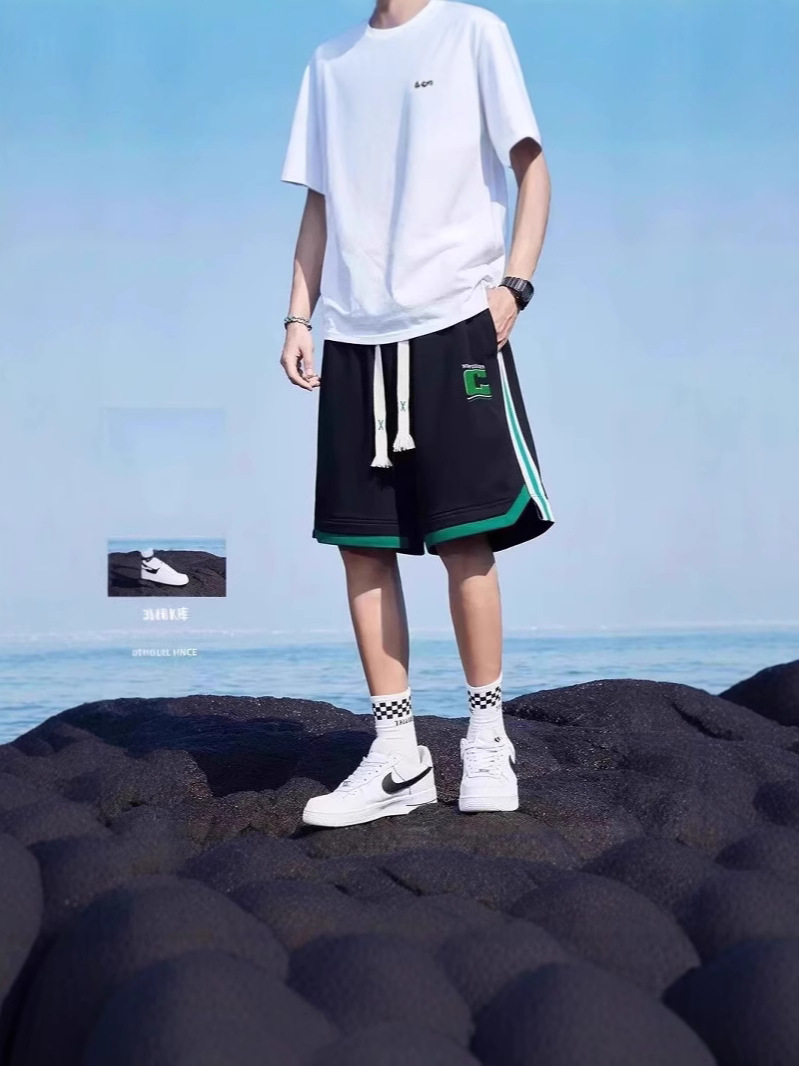 트렌디 한 브랜드 미국 스포츠 반바지 남자 여름 캐주얼 스트라이프 컬러 대조 5 점 바지 2025 새로운 느슨한 스트레이트 바지