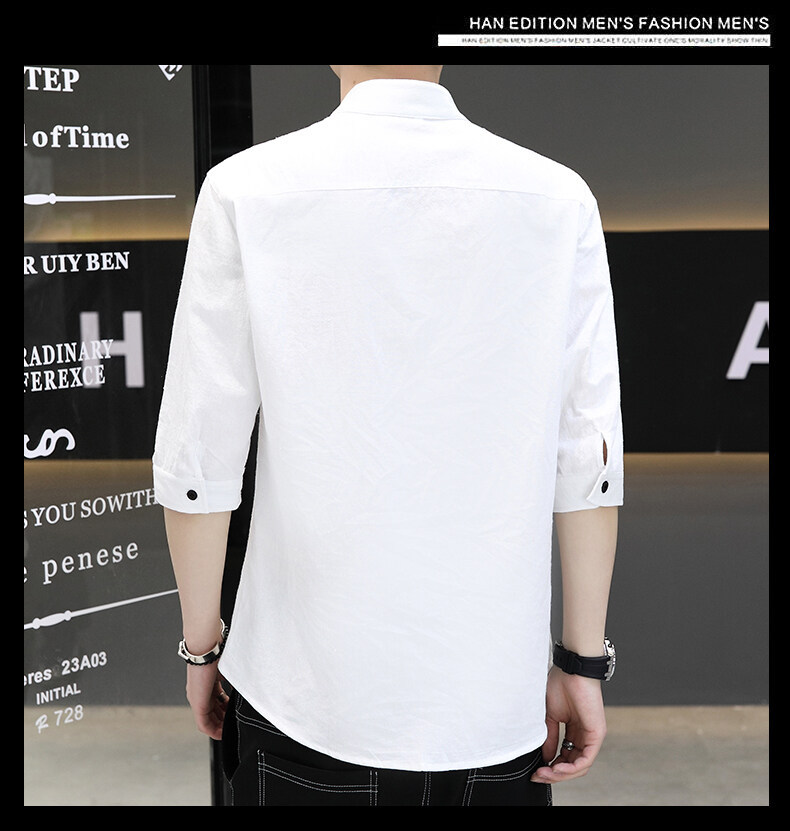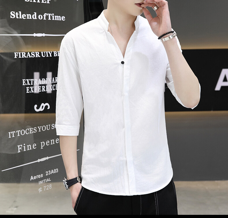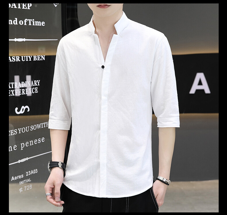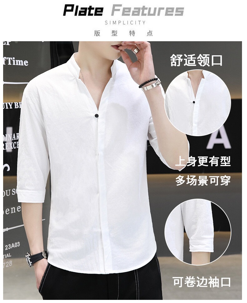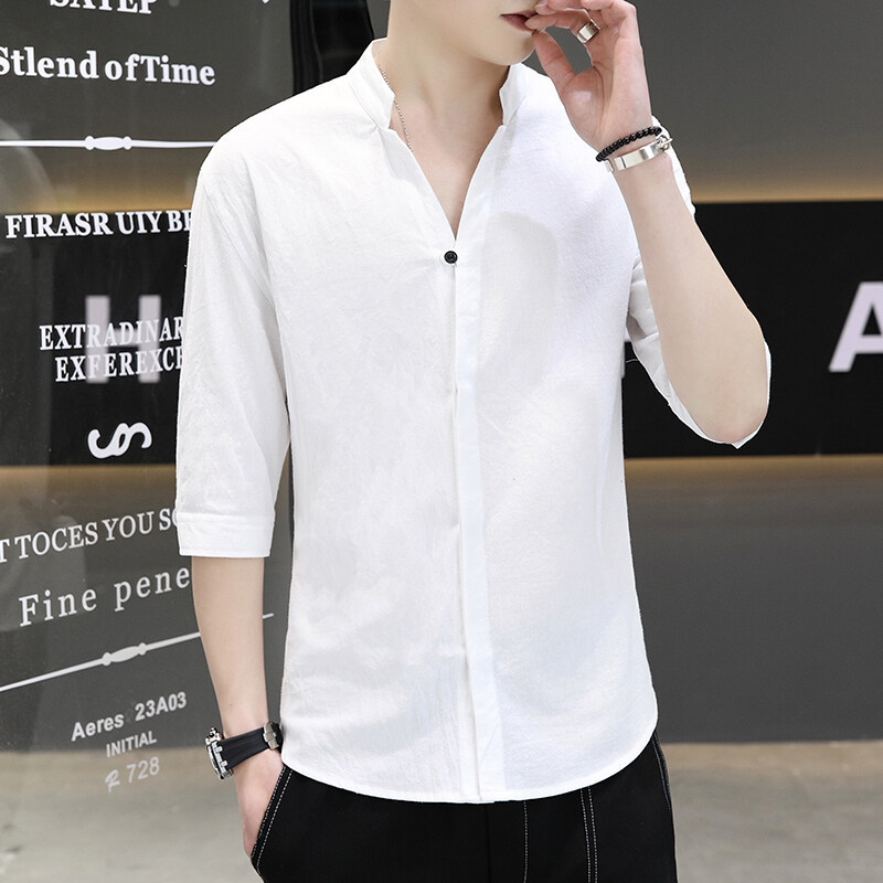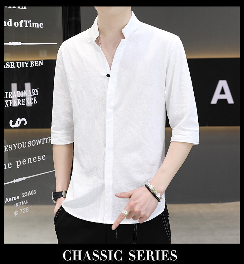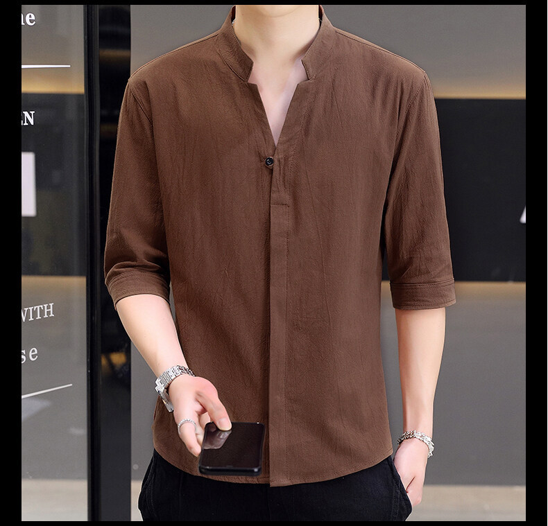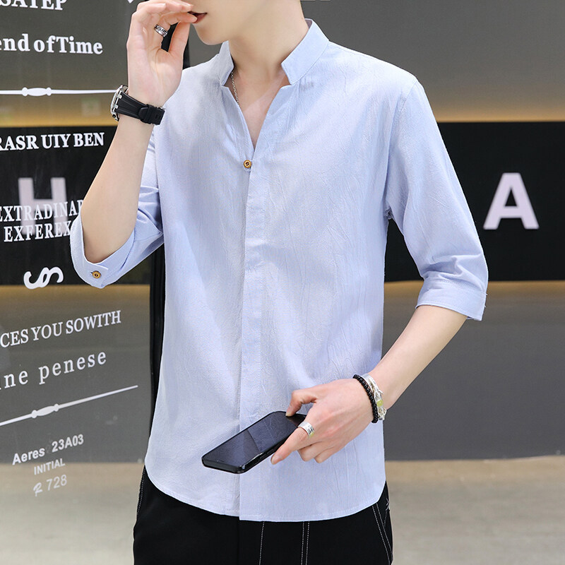 남성용 코튼 리넨 셔츠 짧은 소매 2025 새로운 스타일 얇은 세븐 소매 셔츠 여름 리넨 캐주얼 청소년 남성복스토어 가기
