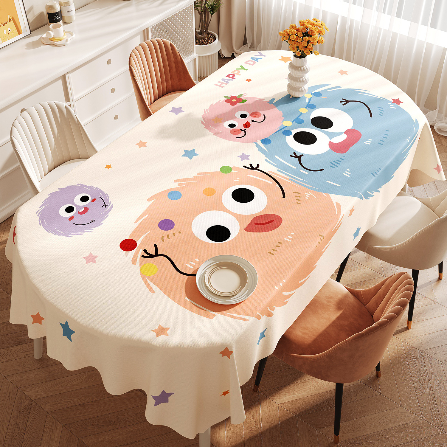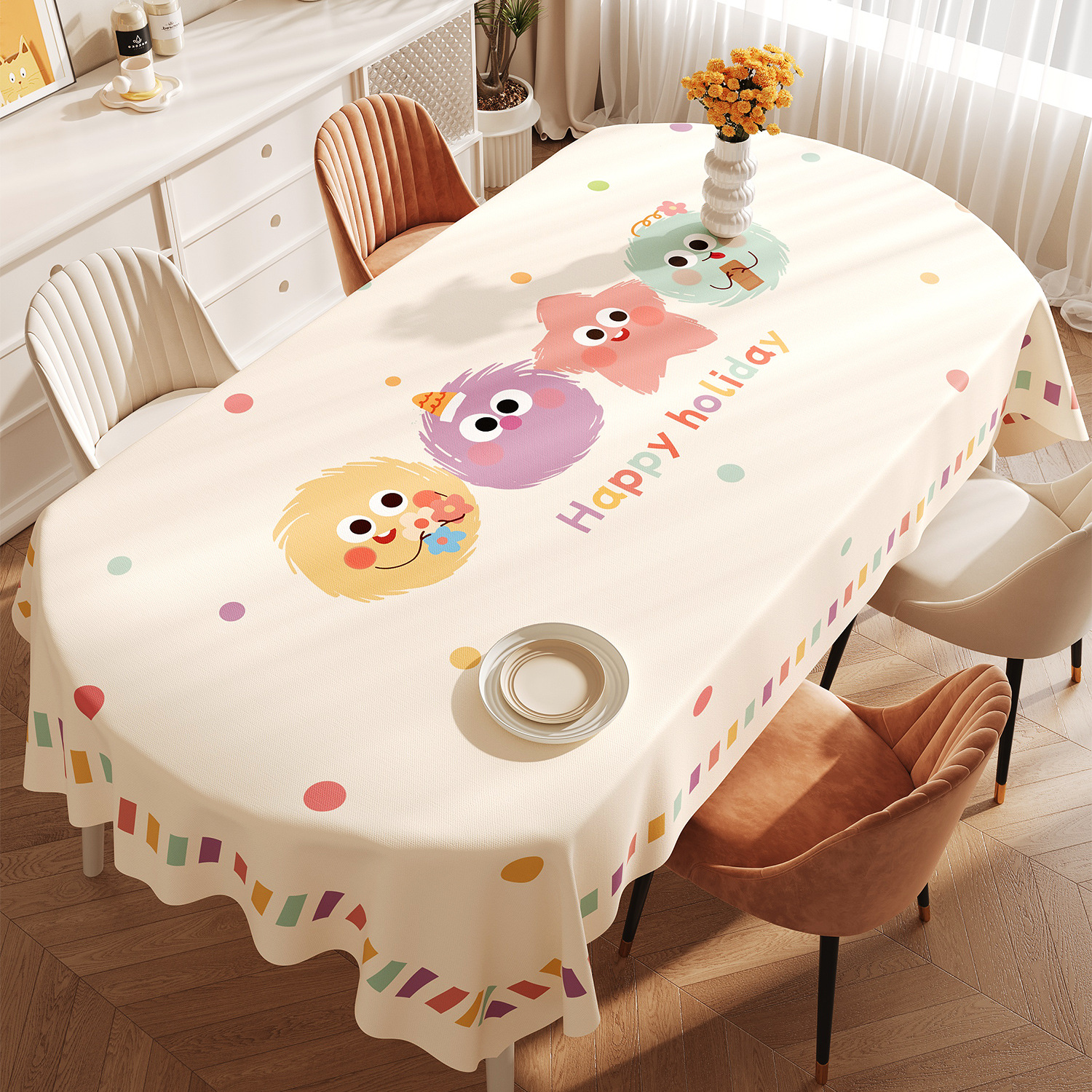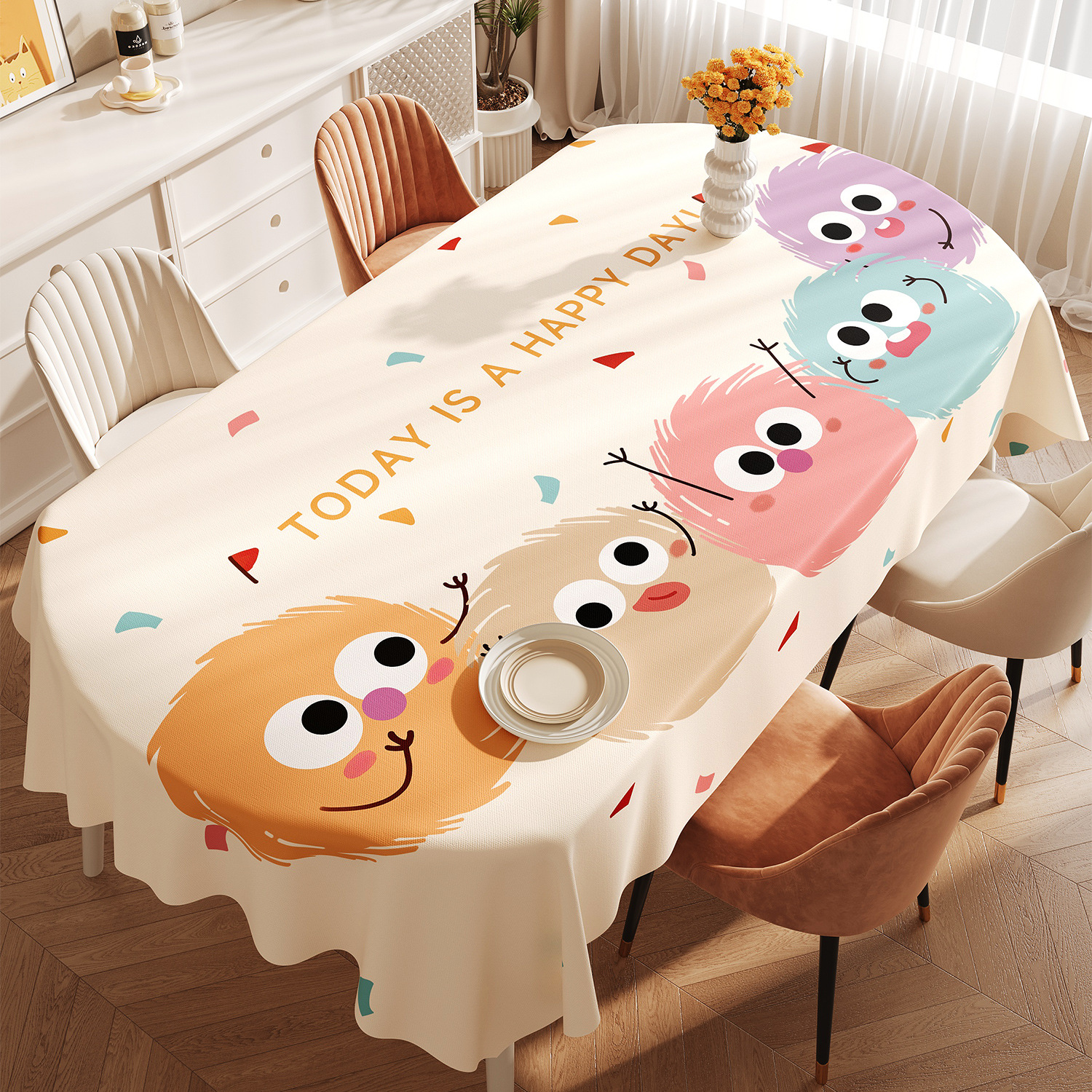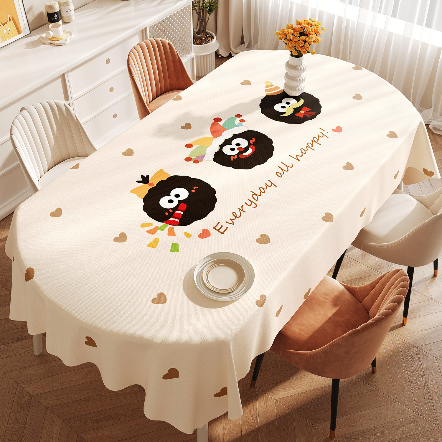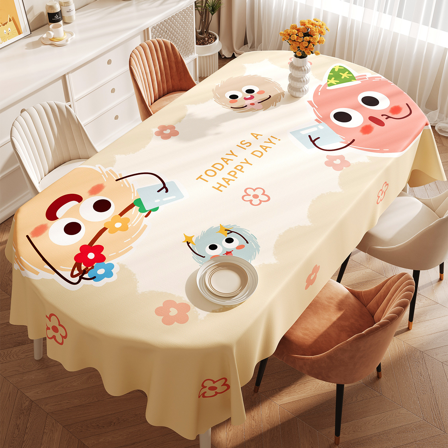 도파민 타원형 식탁보 방수 및 내유성 비 세탁 식탁 가벼운 고급 고급 2025 신식 커피 테이블 테이블 테이블 천스토어 가기