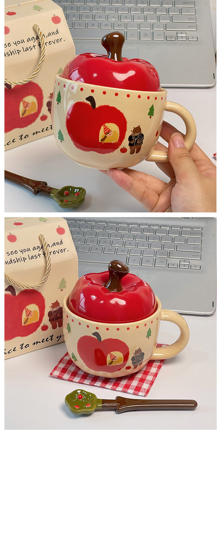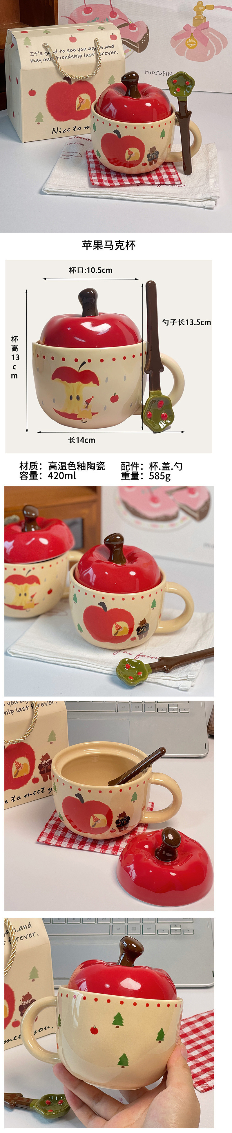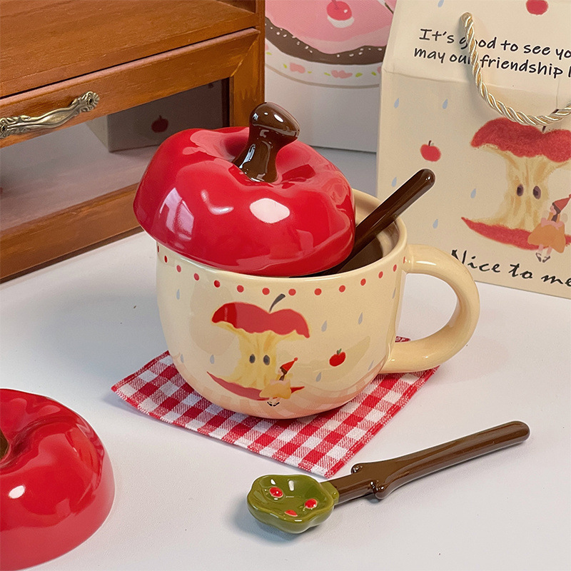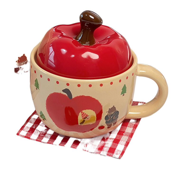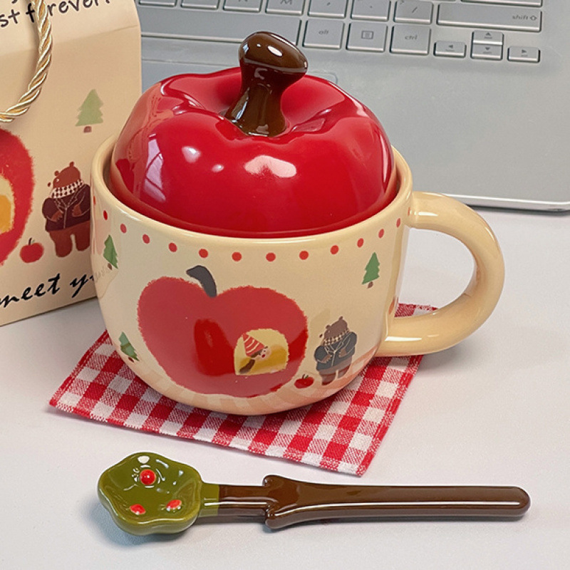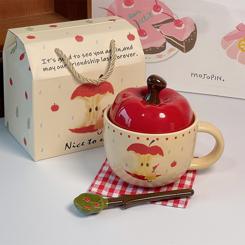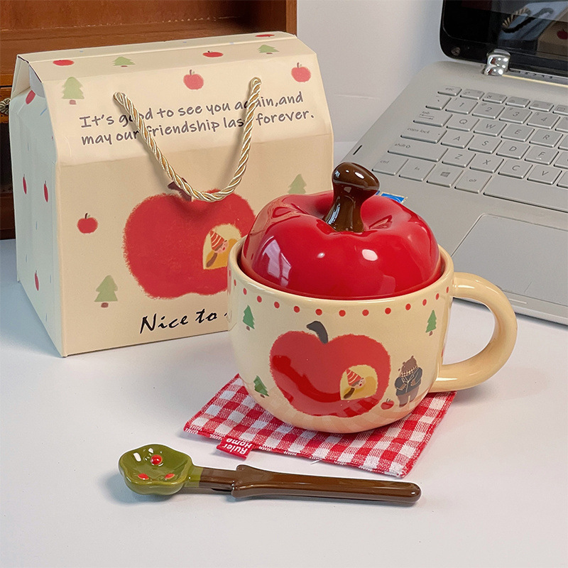 생일 선물 귀여운 크리스마스 애플 워터 컵 소녀의 가장 친한 친구 머그잔 뚜껑과 숟가락 세라믹 컵 동반 선물스토어 가기