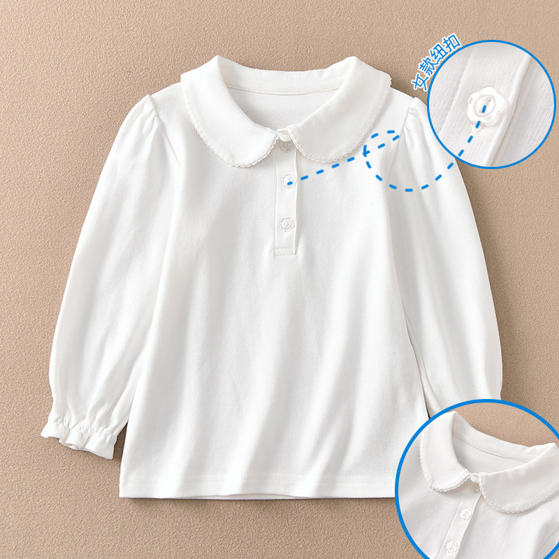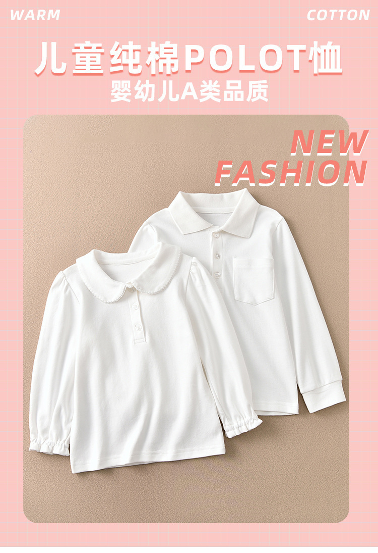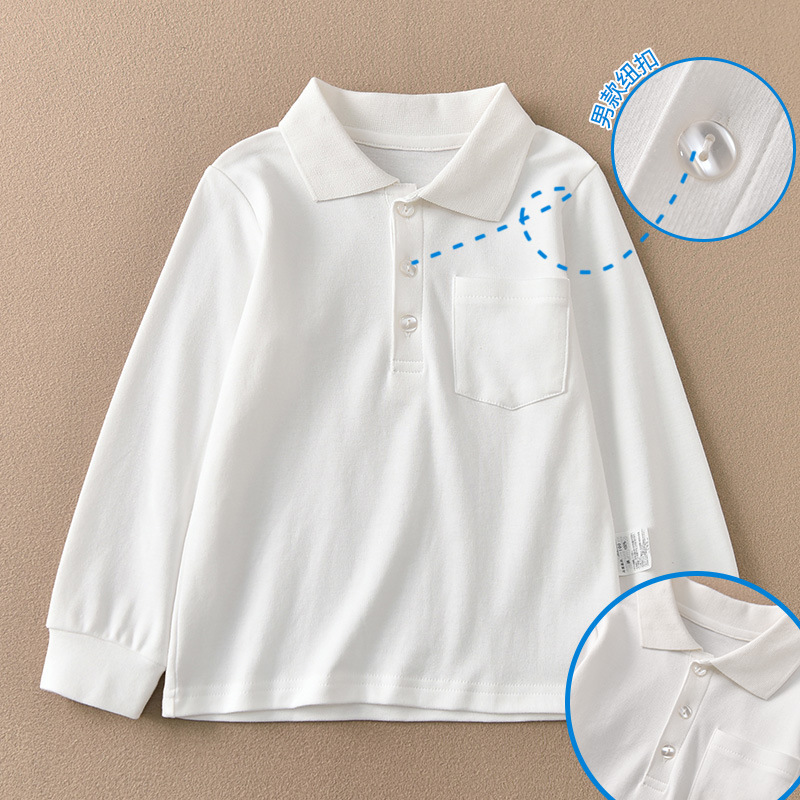 봄과 가을 새로운 어린이 올 매치 퓨어 화이트 폴로 긴 소매 옷깃 베이스 셔츠 소년과 소녀 퓨어 코튼 베이비 탑
