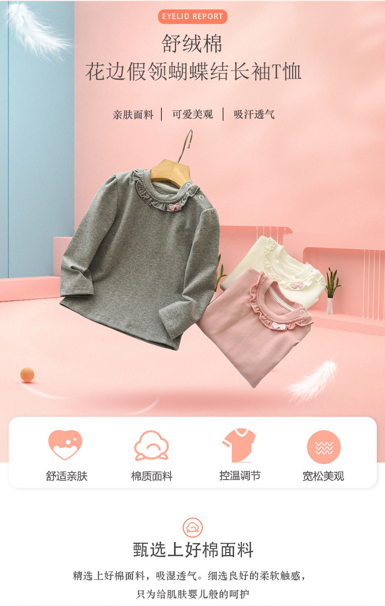 아기 소녀 달콤한 베이스 셔츠 레이스 라운드 넥 어린이 최고 봄과 가을 아기 면 긴 소매 티셔츠스토어 가기