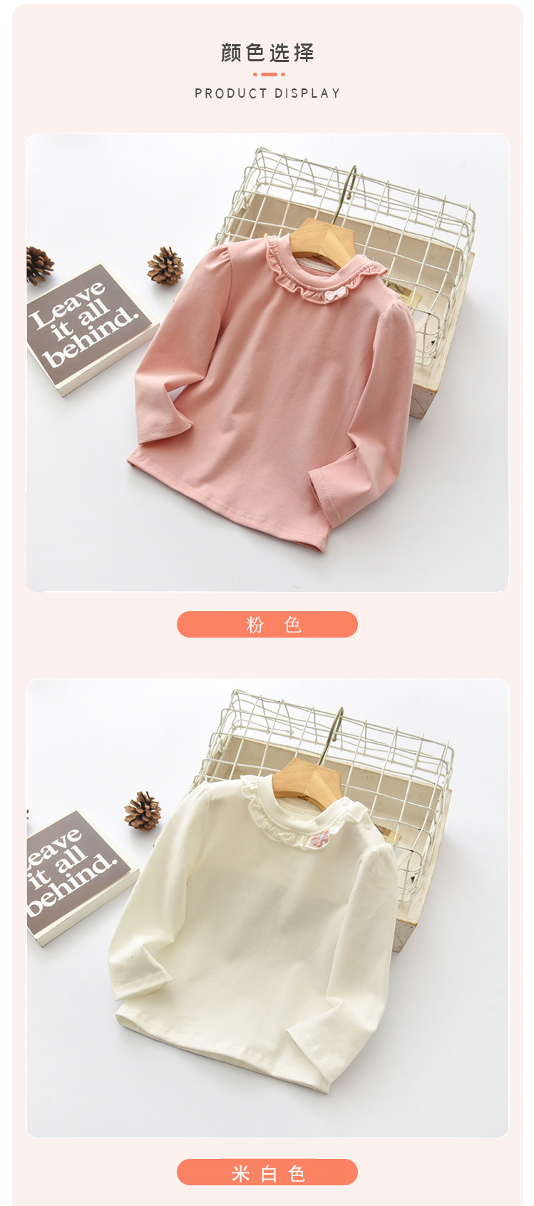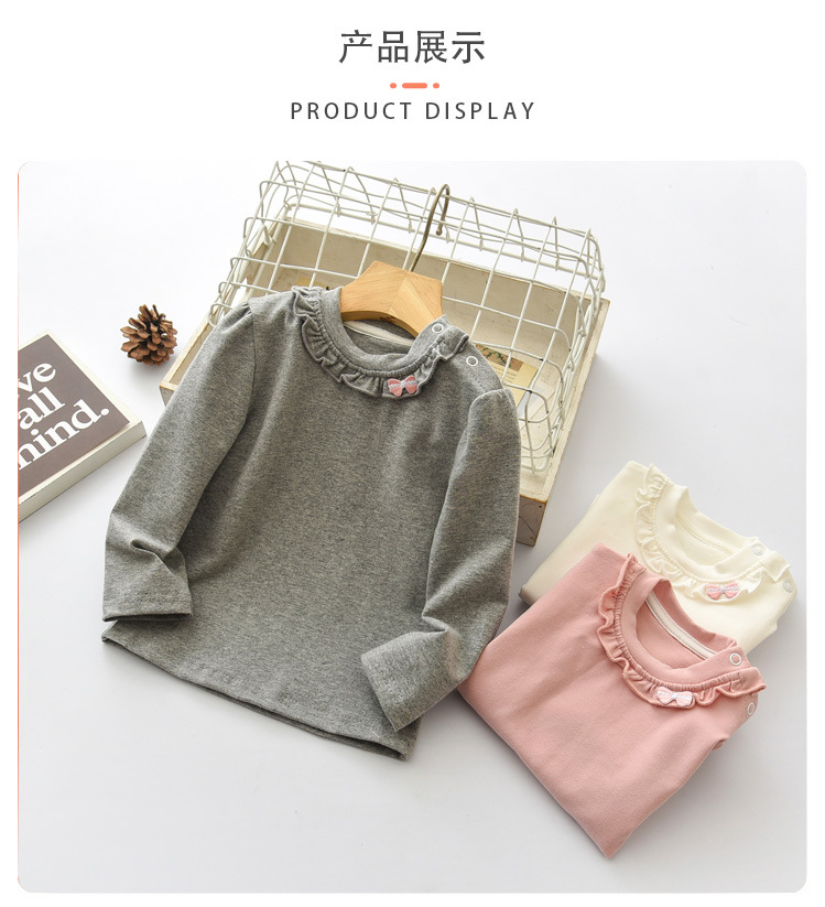 아기 소녀 달콤한 베이스 셔츠 레이스 라운드 넥 어린이 최고 봄과 가을 아기 면 긴 소매 티셔츠