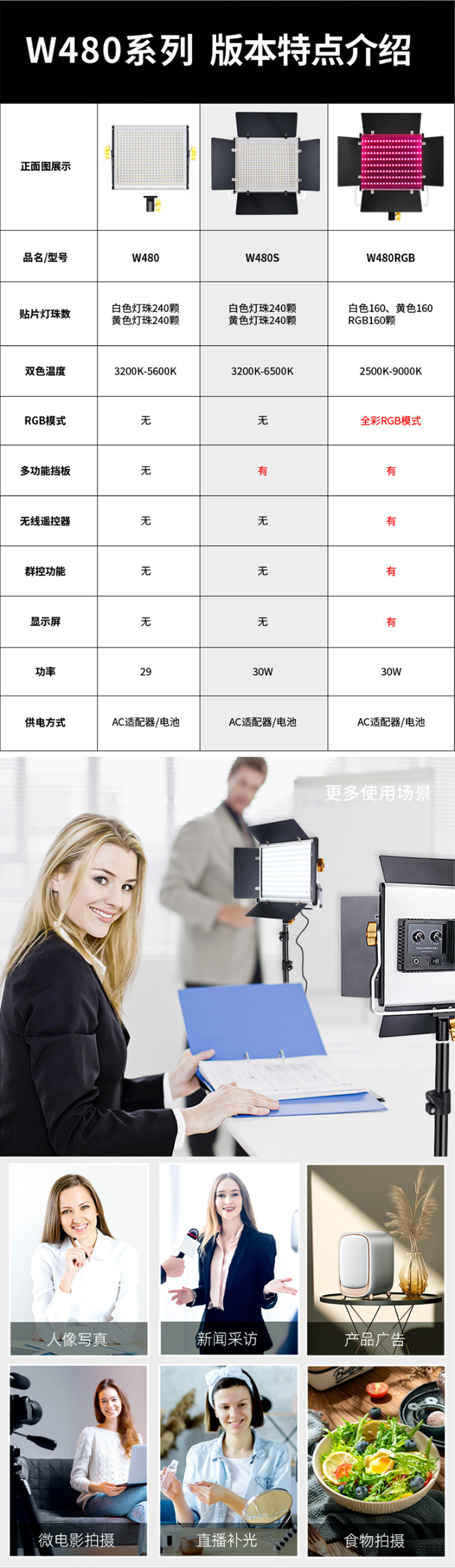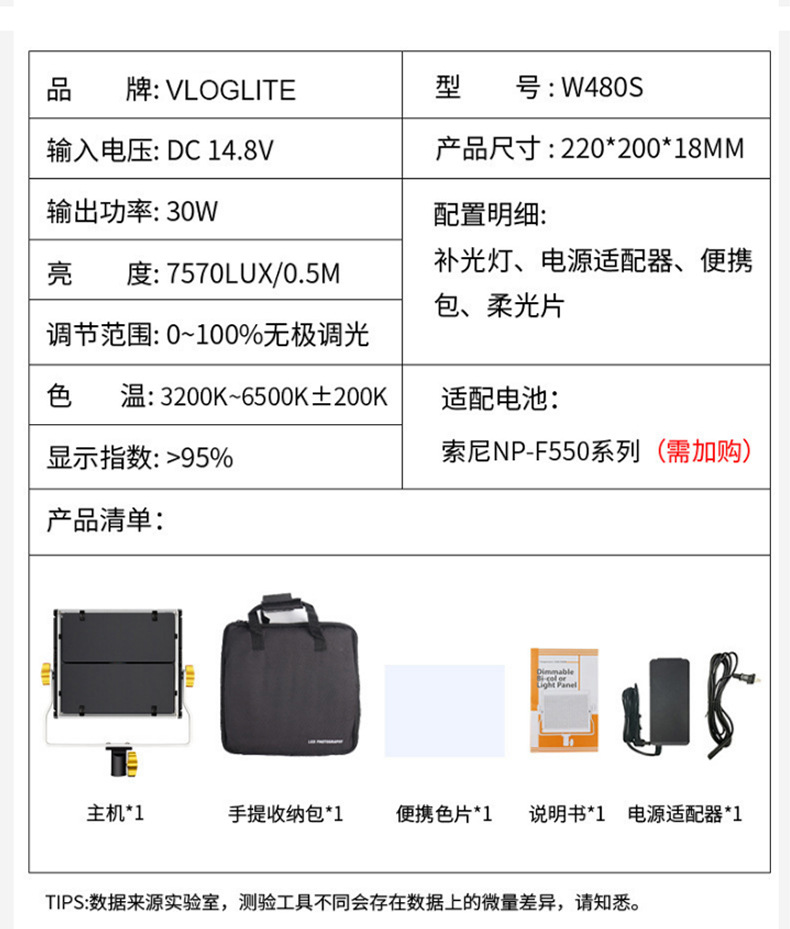 W480S 사진 태블릿 라이트, 휴대폰 셀카 라이브 방송 보조 조명, 특수 비디오 촬영 조명, LED 듀얼 색온도 조절 가능
